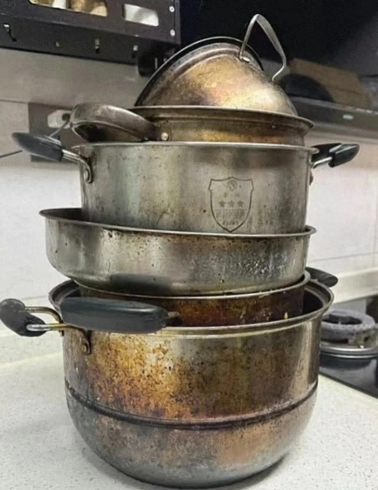 真的是不收拾不知道,一收拾才發現竟然有五六口鍋都是被我燒燬的;