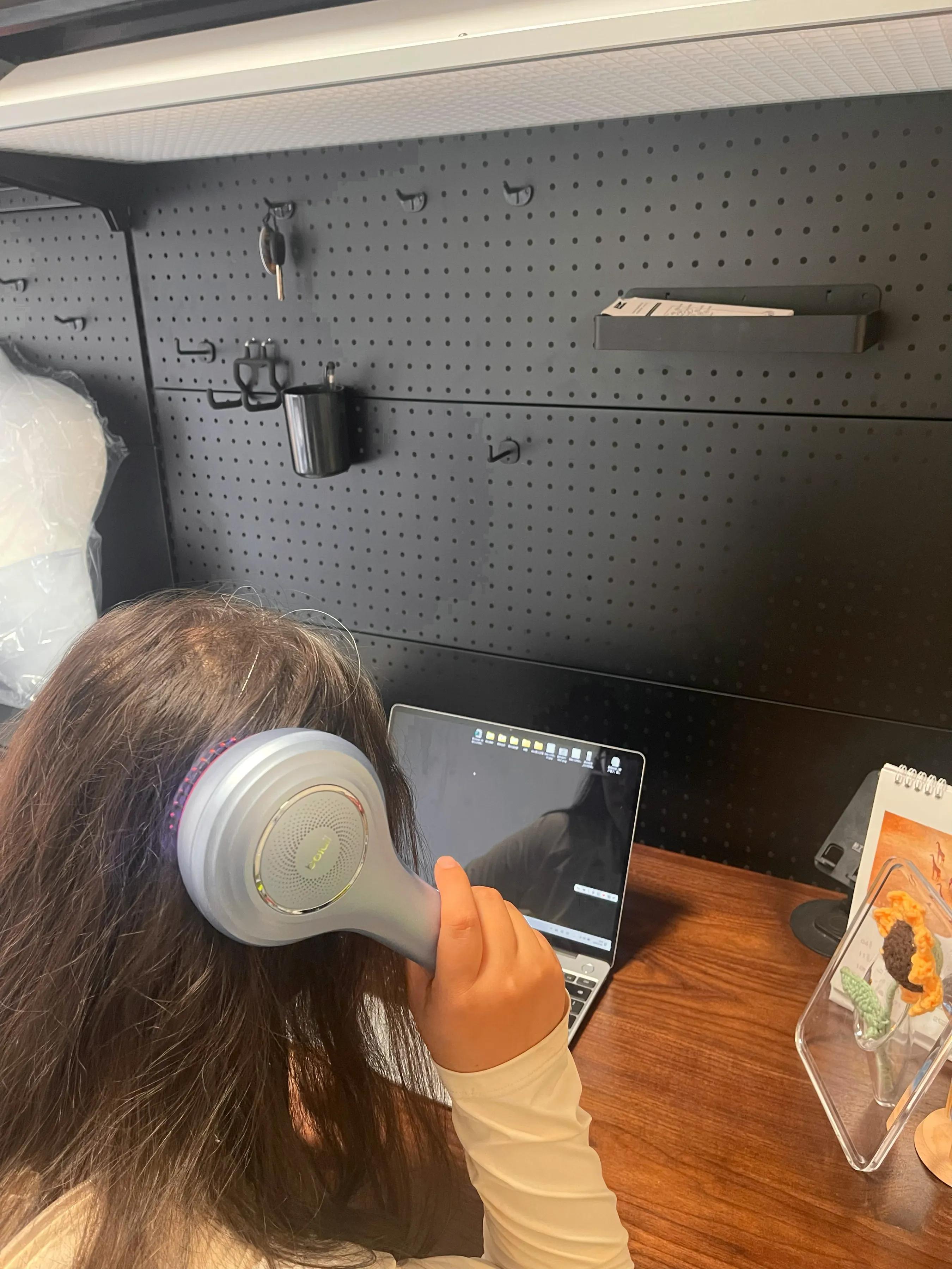 除了完整的護理,日常當梳子用也是一把很好用的梳子,工作時還能把黃光開啓,按摩一下頭皮,舒緩一下壓力、晚上睡覺前也可以按摩一下頭皮,起到助眠作用。