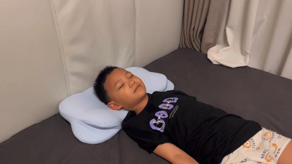 總結就是:因爲人體工學的設計,讓小孩能仰睡頸椎不懸空,側睡脊柱不側彎。