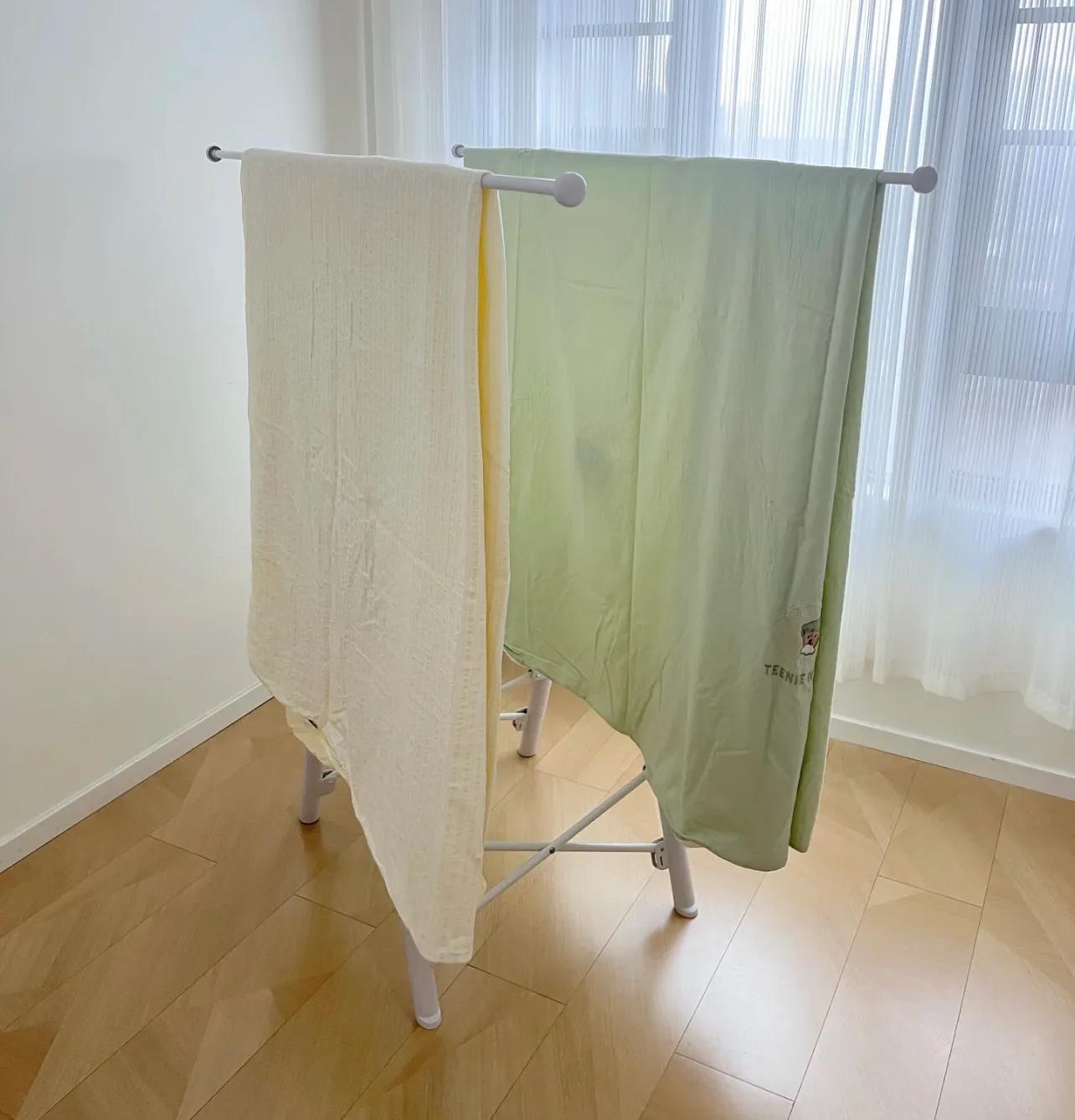 之前每次洗了被子都要拿到頂樓天台去晾曬,現在一個落地晾衣架就完美的解決了!
