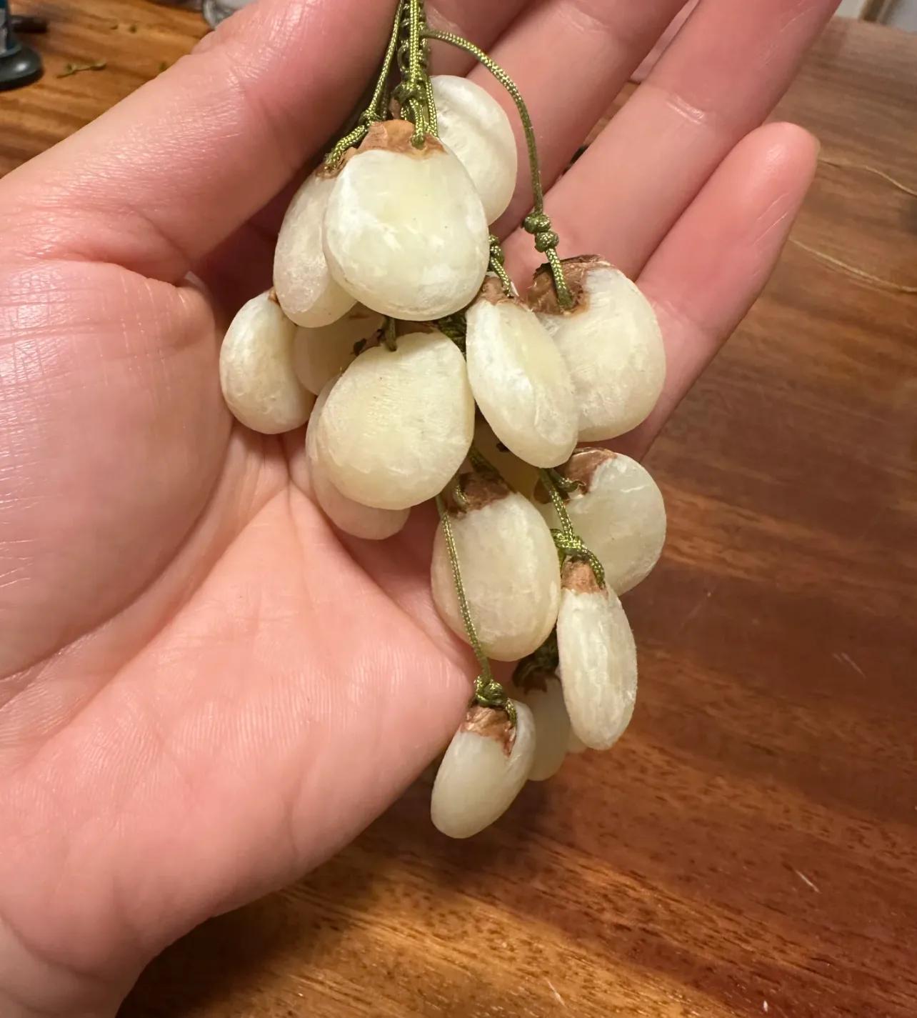 下面喫完的柿子核,一點一點用電磨筆打磨,最終就搞出了一串葡萄。