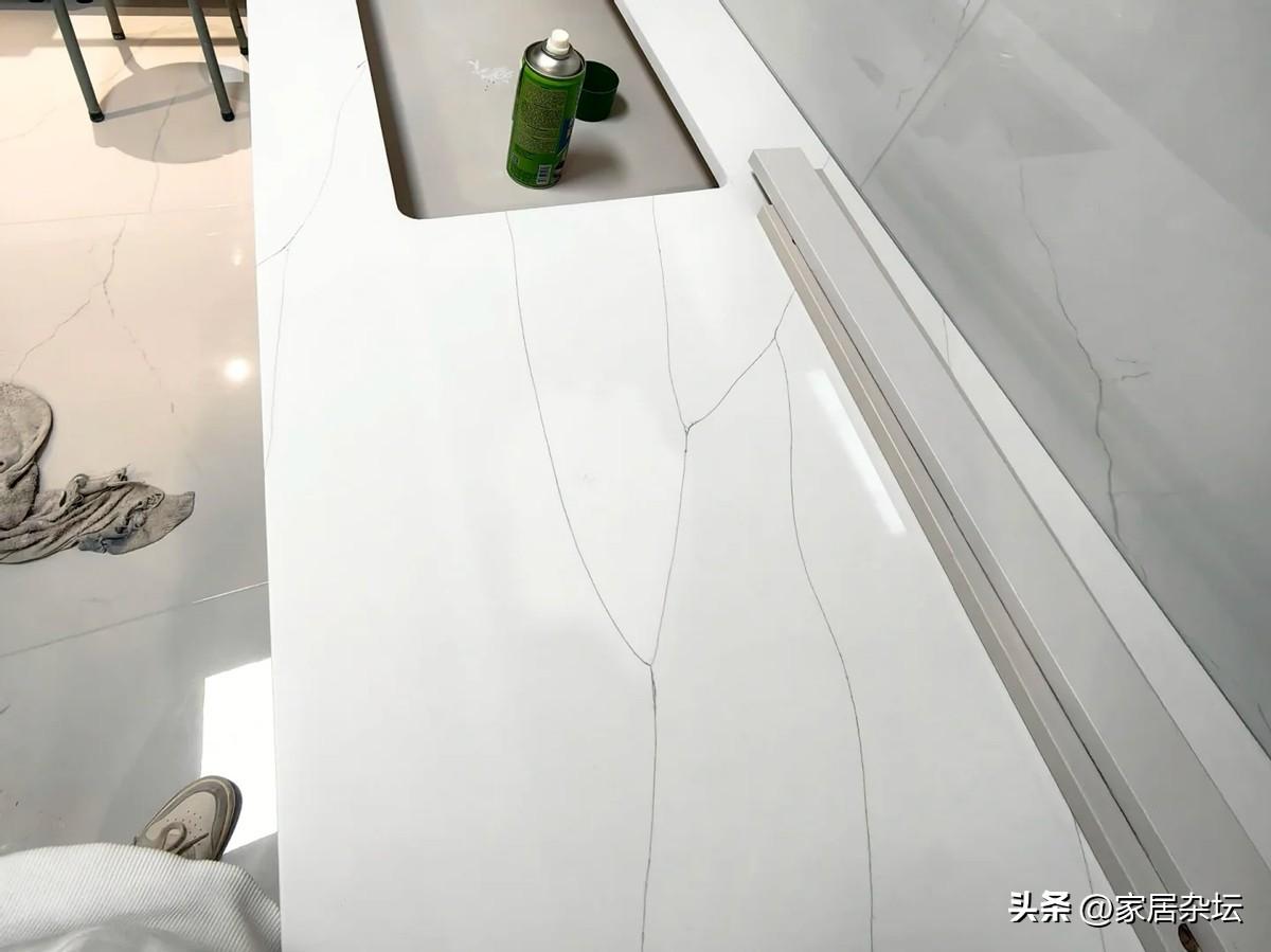 石英石臺面一旦開裂,是很難修復的。大家想想,檯面上一道裂痕,甚至還有兩三道,每天看着,的確是讓人很糟心。