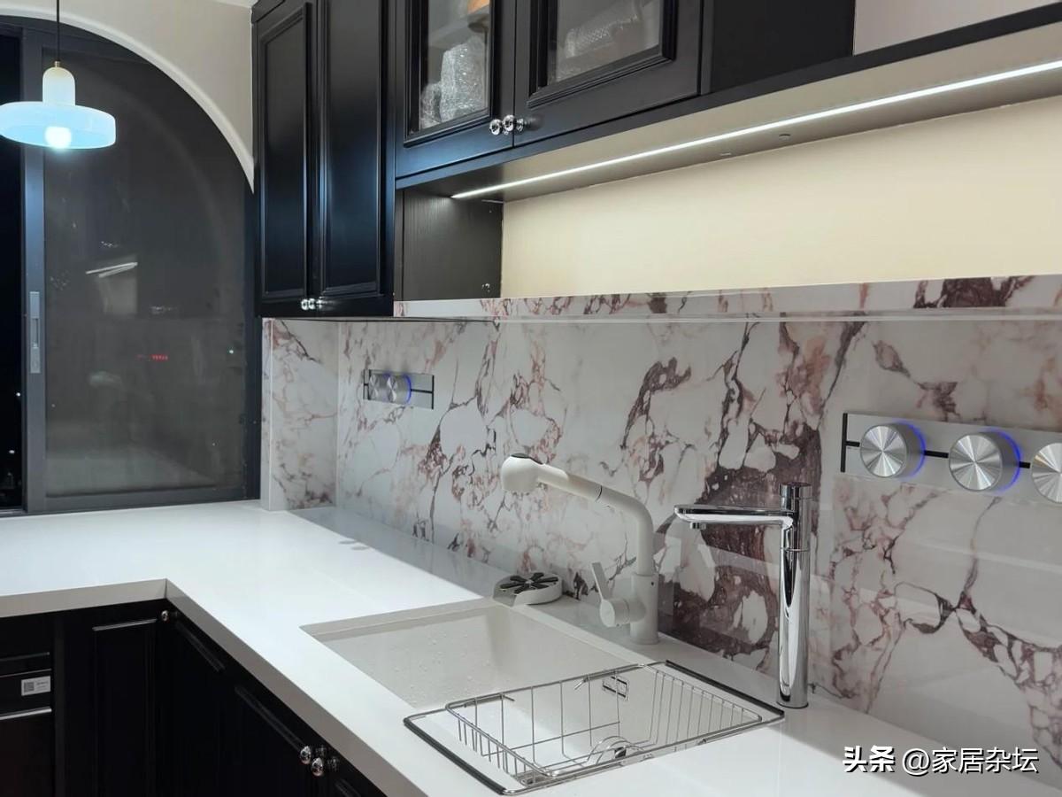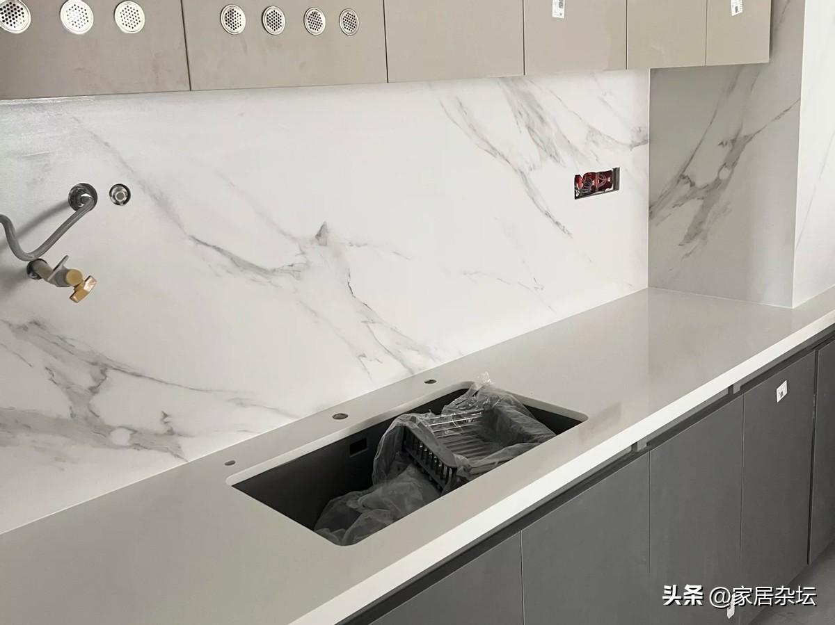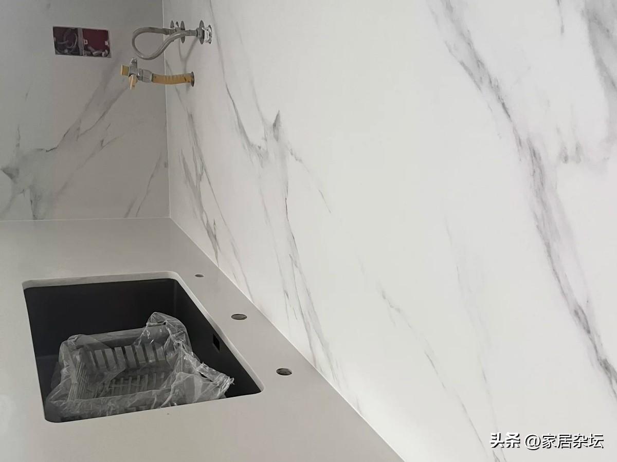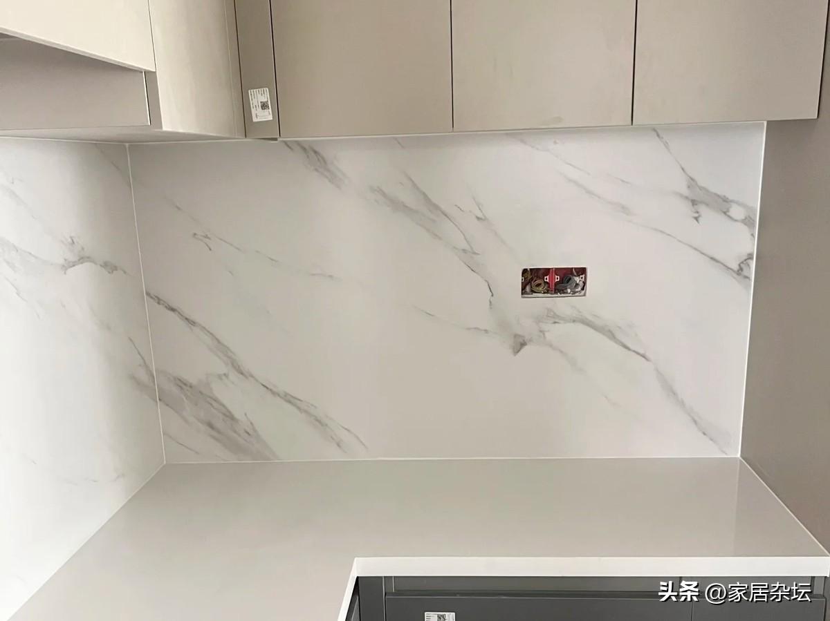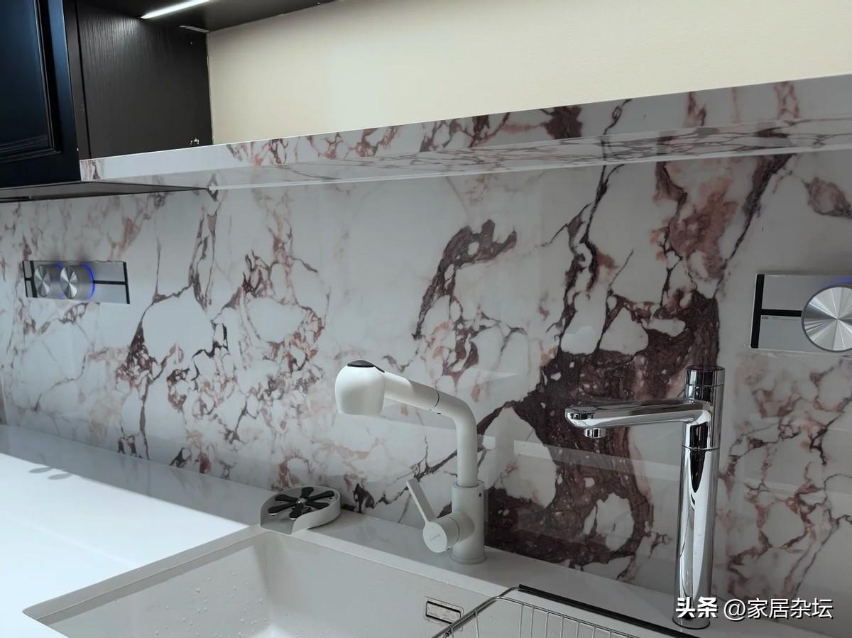 可能粘貼完單塊巖板以後,效果不是特別明顯。當我們把家裏的櫥櫃都裝上,只是外露了一整塊巖板以後,你會發現真的很高級。