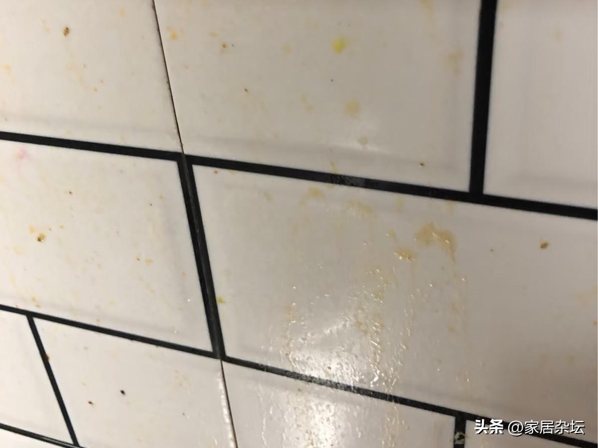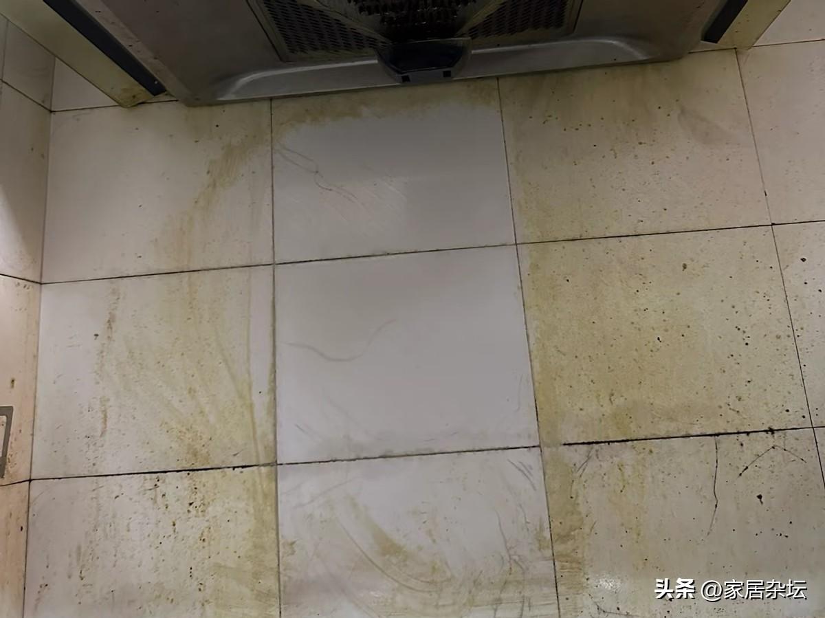 可是,無論我們怎麼處理,竈臺上方的牆面,你會發現,時間長了總會有油污。即使美縫,沿着這條美縫,這條縫隙上面都是油污。時間長了,美縫可能就開裂了脫落了,油污就會滲進磚縫。