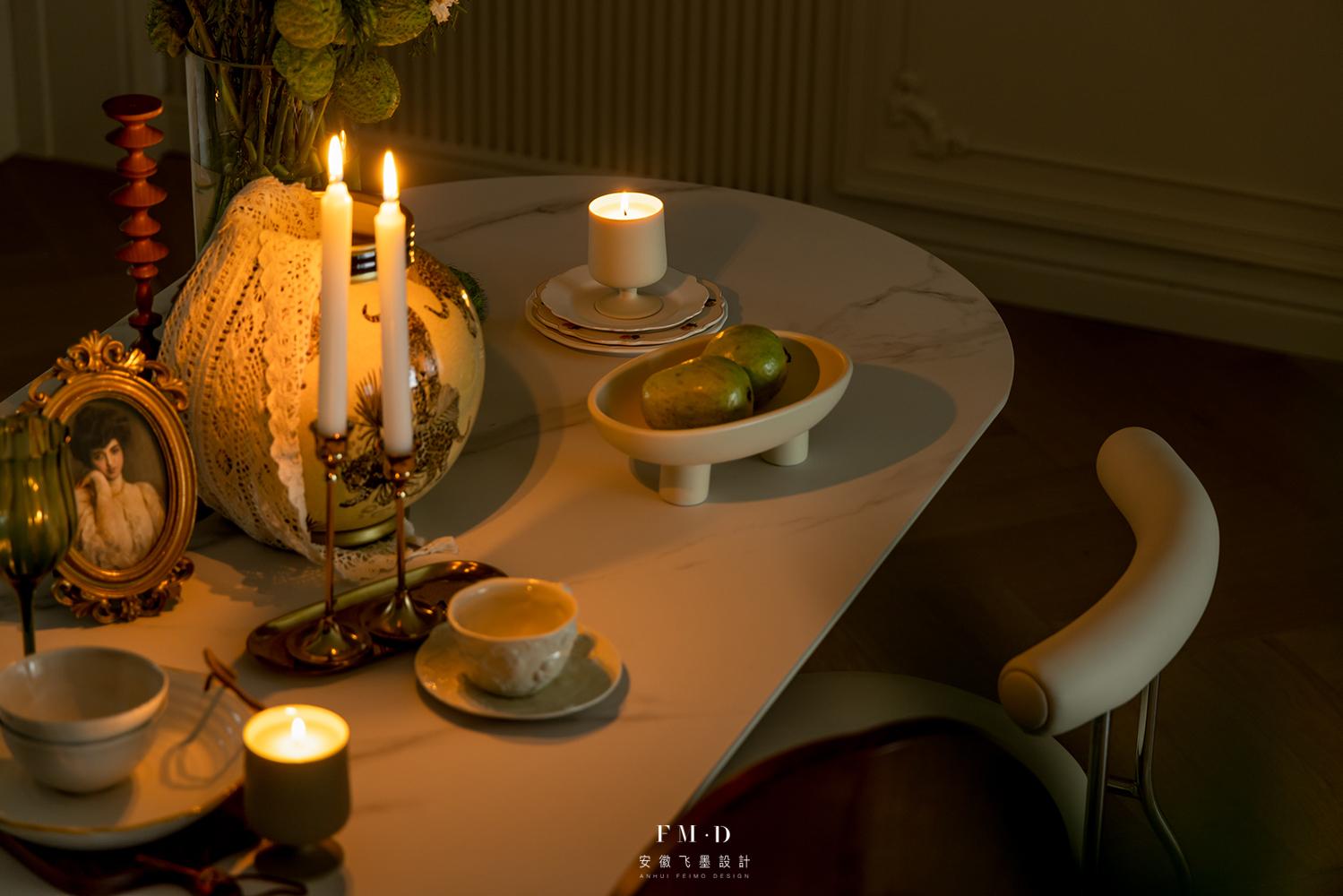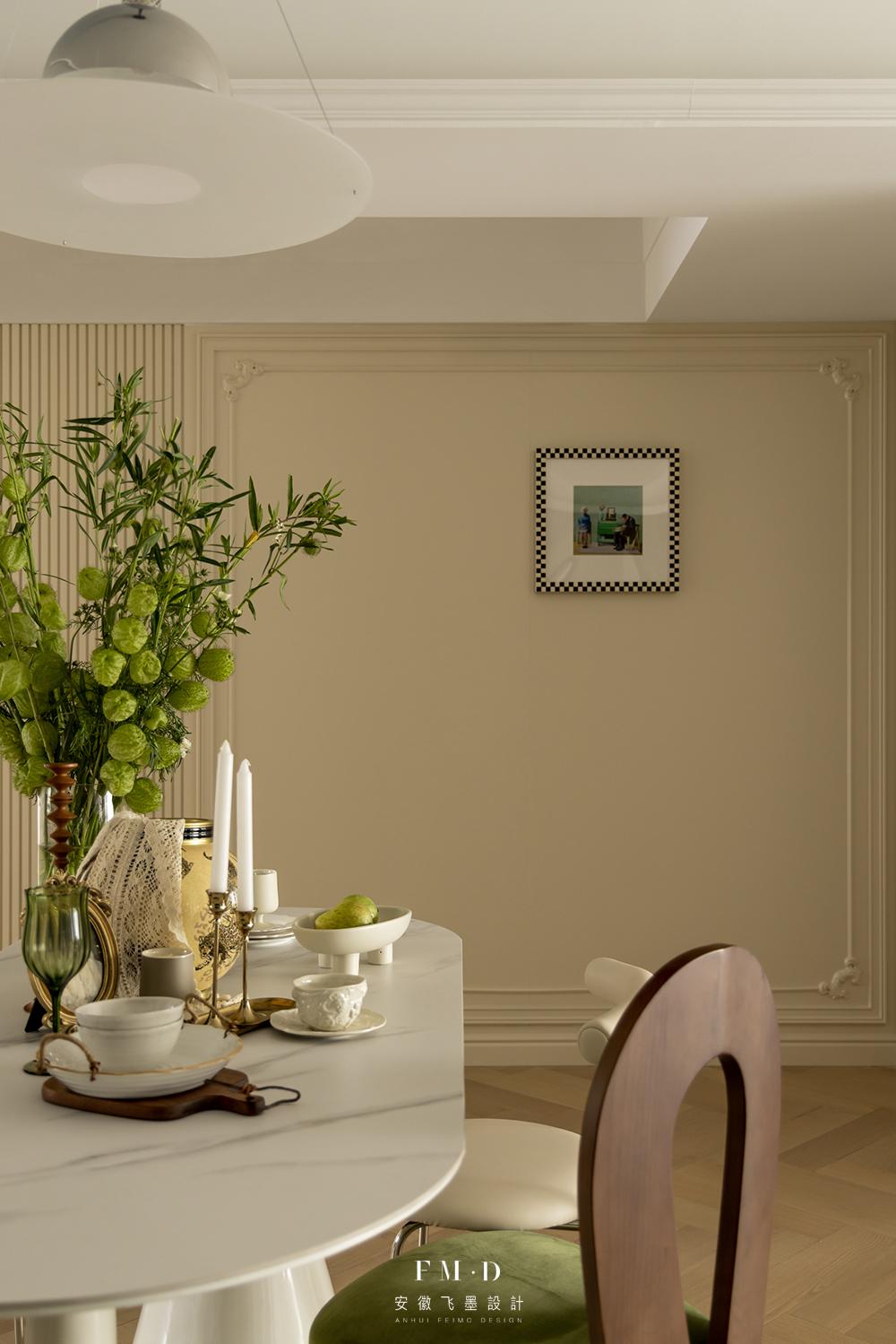 2、1.8長的聖盃餐桌搭配不同造型風格的餐椅,個性感十足,桌面擺上業主喜歡的餐具和糖棉花束,用餐氛圍感一下子就被拿捏了!