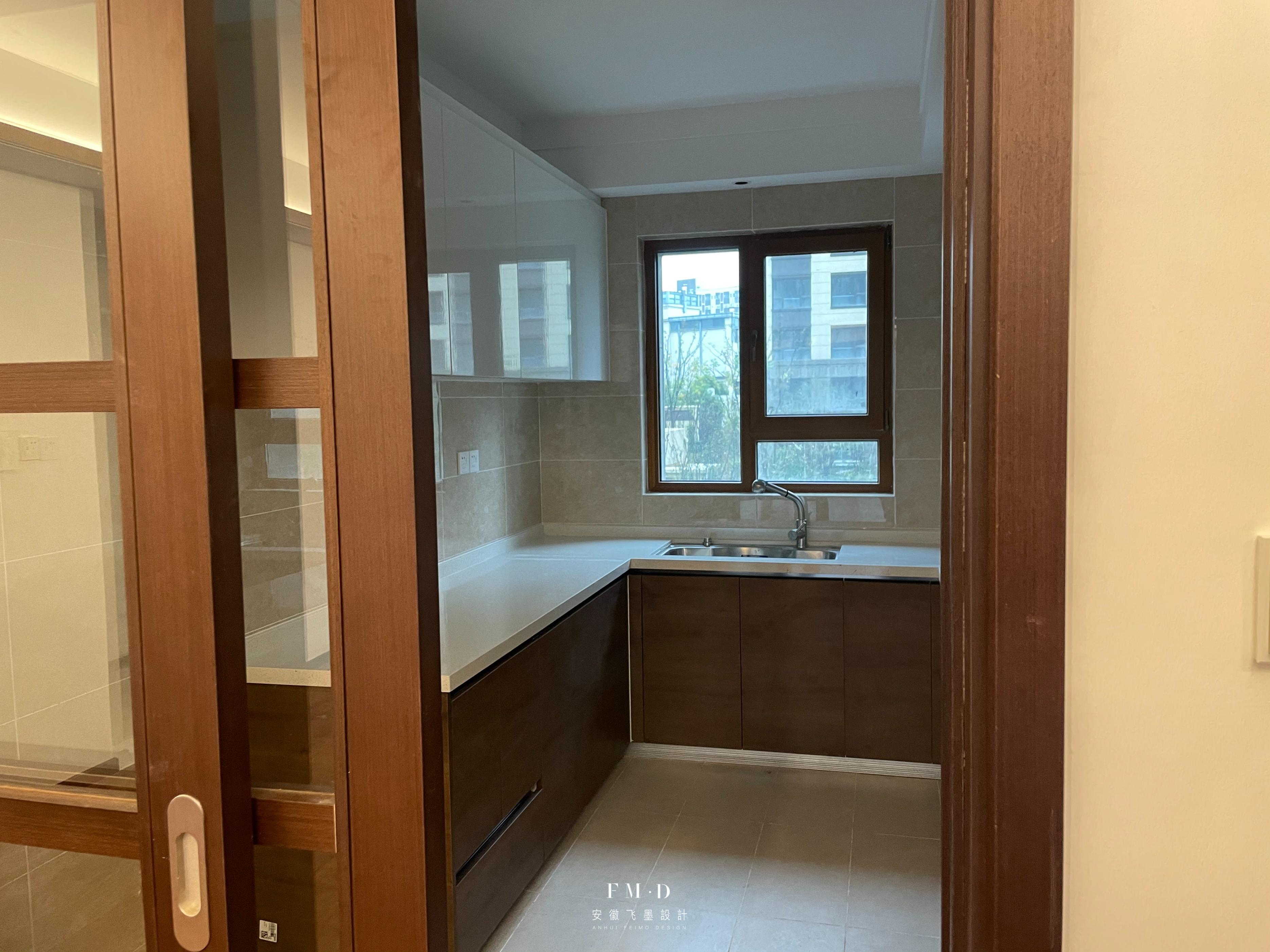 廚房業主保留了原本精裝房自帶的設計,並沒有進行改造,U型櫥櫃無論是從操作檯面還是收納都很方便,門口預留出冰箱位置,進出廚房拿取食材都很順手,實用性不差。