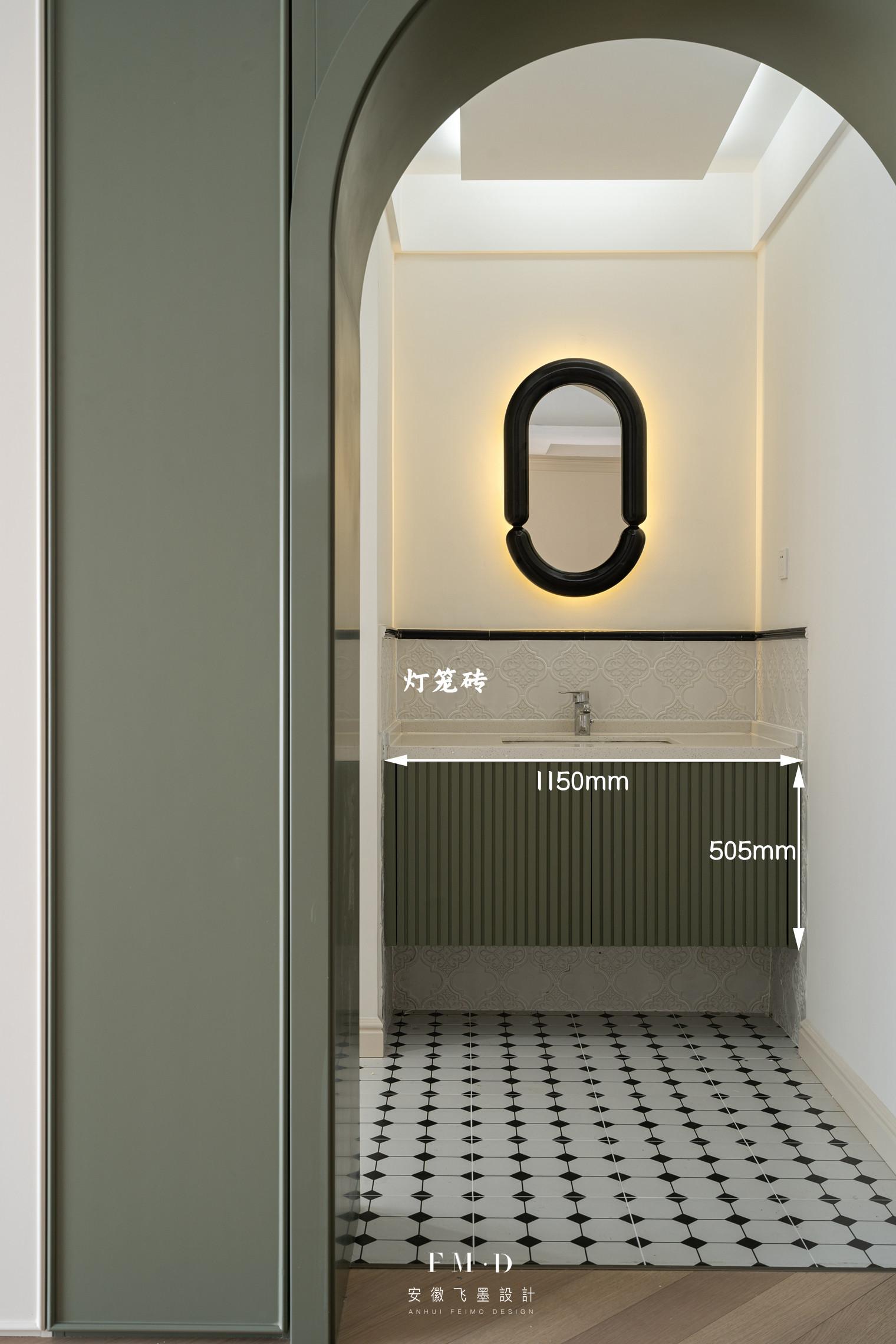 1、客衛幹區拆除後牆面刷上杏子灰乳膠漆,檯面往上用燈籠磚返高了大概30公分,能防水也有層次感。