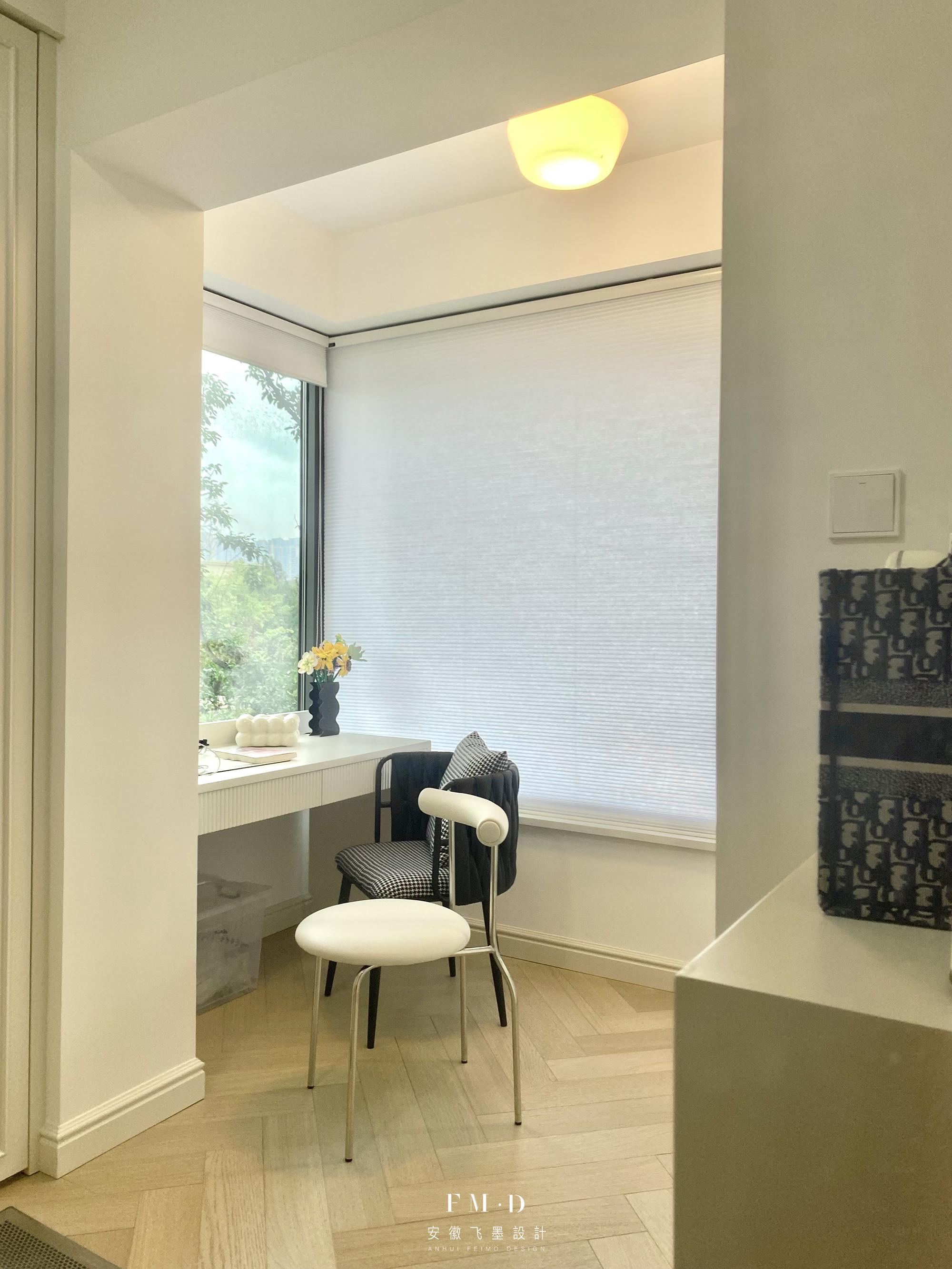 2、落地窗邊規劃書桌,隨時隨地都能欣賞到風景,嫌曬的話只需要調節百葉簾就行了。
