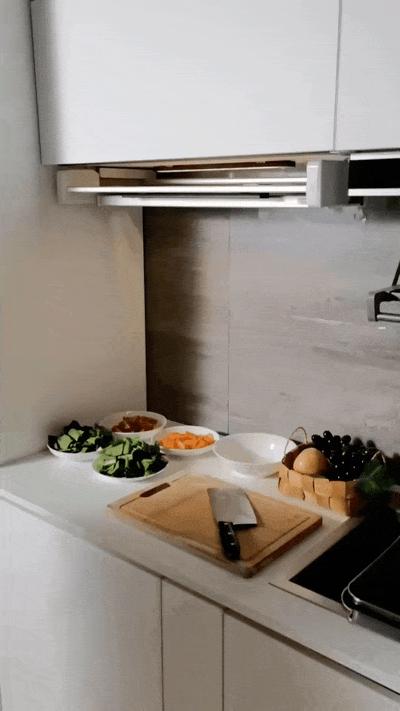 網友@可愛多很可愛:小廚房最頭疼的就是備菜空間不足!我家幾平米的廚房,檯面永遠不夠用。之前看中一款下拉式摺疊備菜架,但五六百的價格實在下不去手,還聽說容易壓壞櫃板,清洗也不方便。