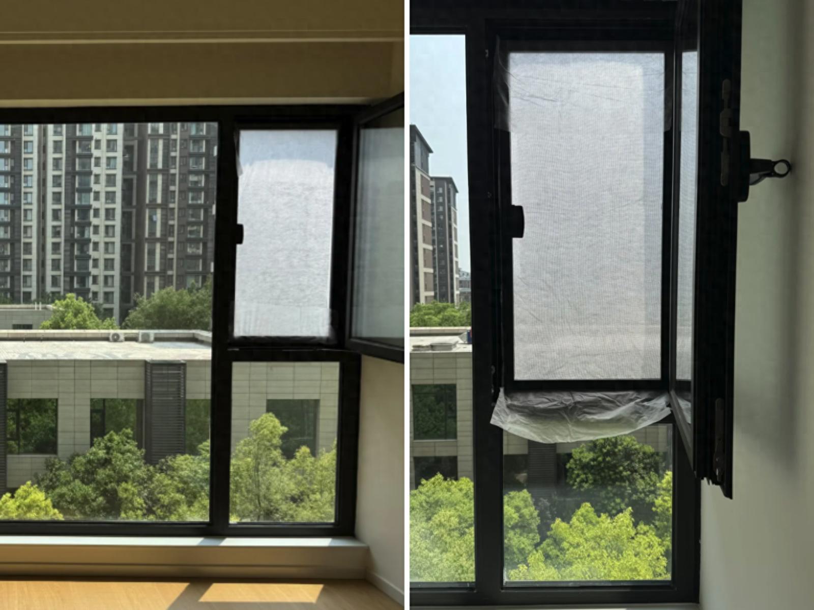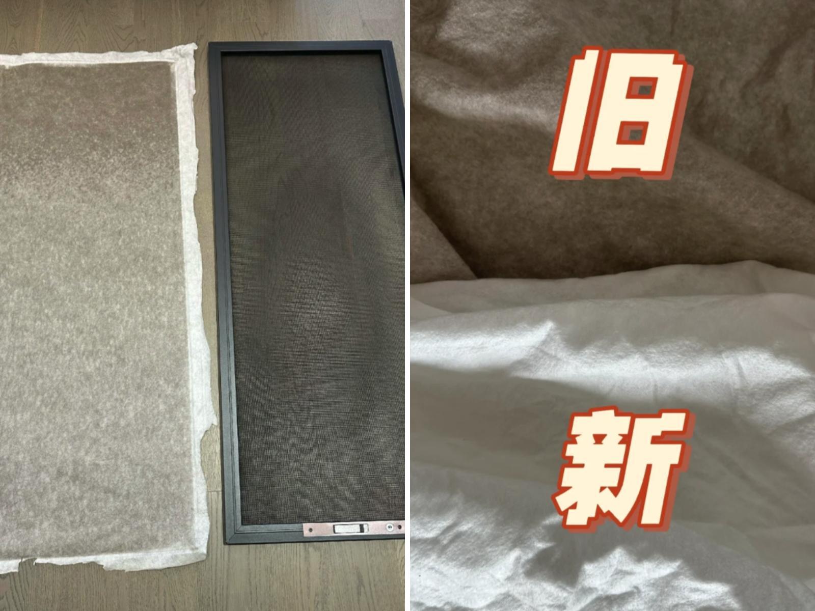 其實有個超省錢的辦法改善:花20塊買捲過濾靜電棉(好幾米自行裁剪),剪裁後搭配幾塊錢的蝴蝶扣(或用閒置耳釘)固定在紗窗上,就能“自制簡易新風”過濾灰塵。