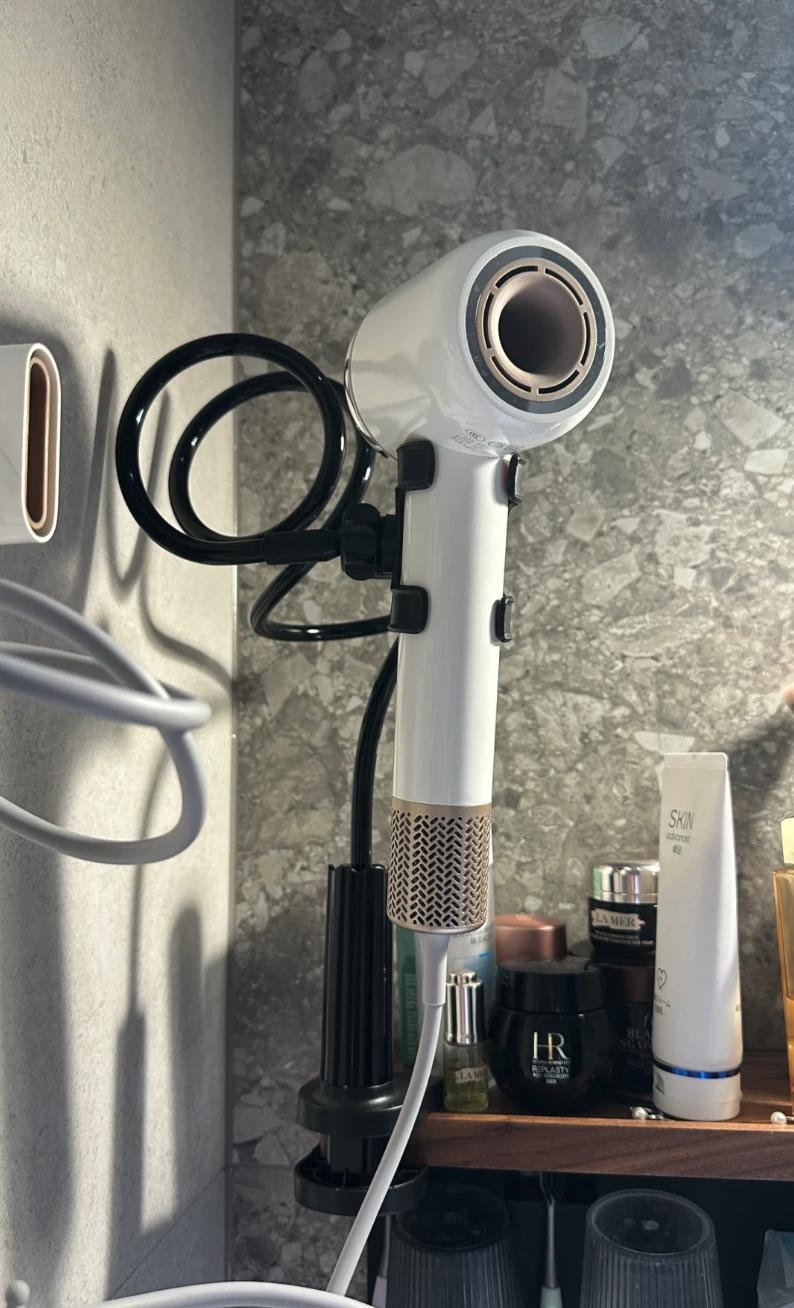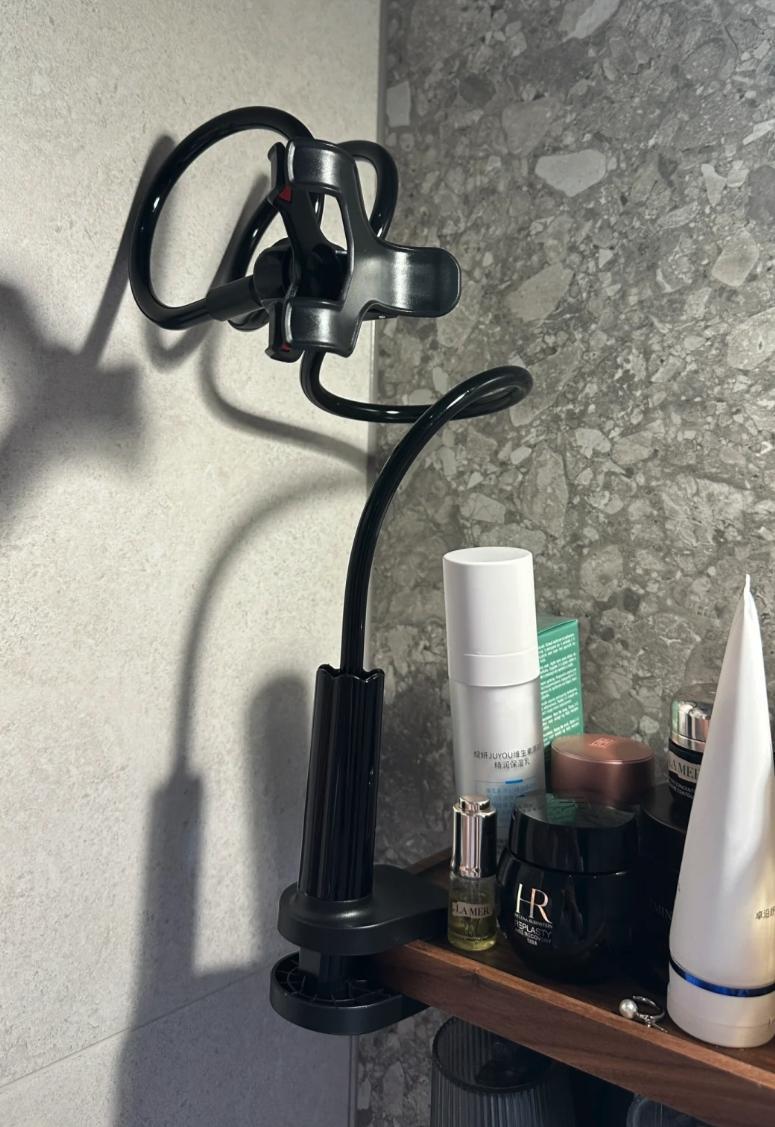 我靈機一動,把它夾在洗漱臺的護膚品層板上,瞬間變身吹風機支架!現在吹頭髮時能解放雙手,角度隨意調,收納問題也解決了。
