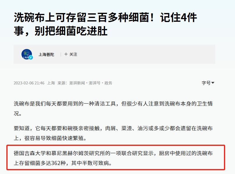更難爲人的是,若用清潔抹布直接擦去廚房油污,細菌數量則會更多。德國吉森大學和慕尼黑赫爾姆茨研究所的一項聯合研究顯示,廚房中使用過的洗碗布上存留細菌多達362種,其中半數可致病。拿滿是細菌的抹布擦油污,無疑容易“火上澆油”。