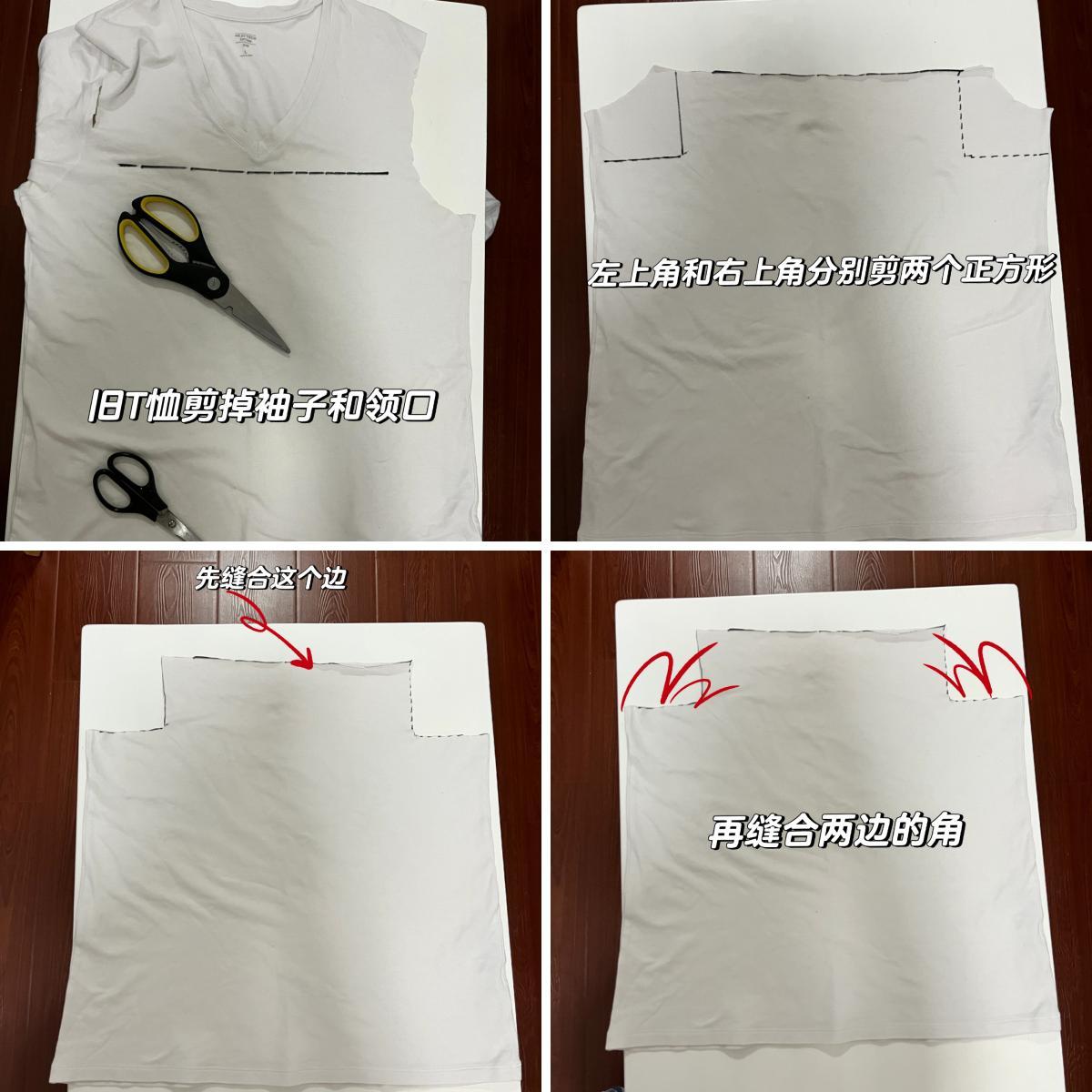 其實收納家裏的薄一點的被子,也是根本不用專門去買收納袋的。那些壓箱底的舊T恤,稍微改造一下就能變身實用又好看的收納袋。方法特別簡單,照着圖片裏的步驟來就行: