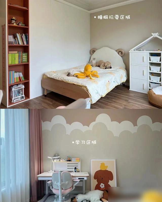 兒童房沒搞花裏胡哨的造型,留足了跑跳的空間——孩子在地上爬、玩玩具,比那些華而不實的裝飾有用多了。