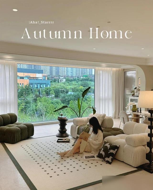 橫廳直接打通陽臺封落地窗,客廳瞬間變成四季觀景臺,往沙發上一靠,窗外的樹影跟着風晃,陽光斜斜灑進來——就這場景,誰不想下班回家往這兒一癱?