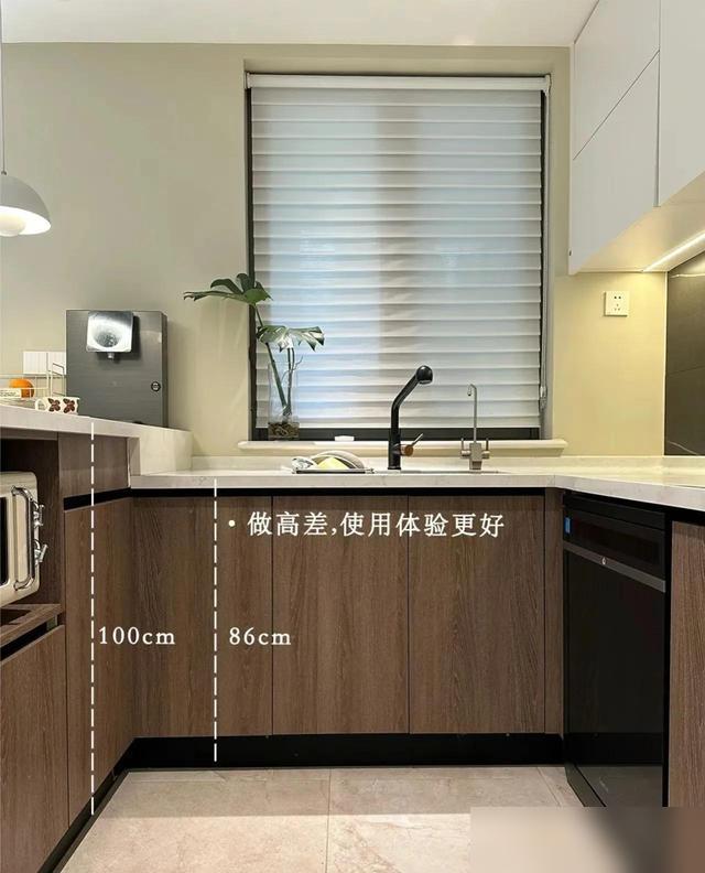 廚房U型佈局+嵌入式冰箱,明顯是過日子的人會選的配置。