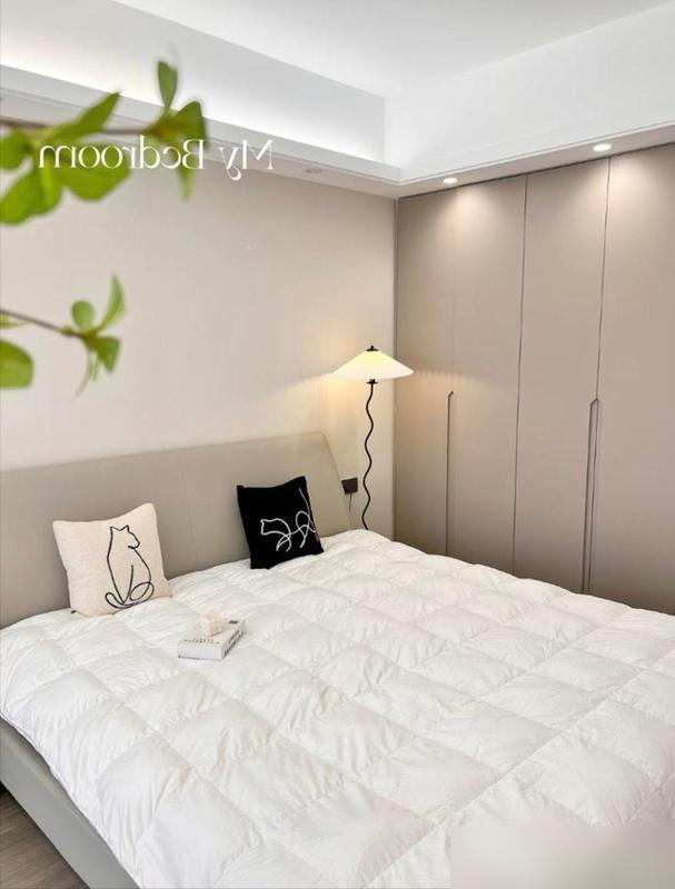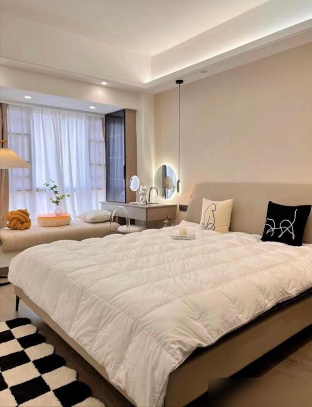 最難得的是,他們沒跟着“去客廳化”或者“極簡風”瞎跑。米灰色沙發配幾個彩色抱枕,看着清爽又不冷;臥室刷了暖色調的背景牆,晚上開盞小夜燈,溫馨得能讓人卸下一天的疲憊。現在很多年輕人裝修,要麼學博主裝得“冷硬高級”,要麼堆一堆網紅擺件,反而丟了家該有的溫度。這小兩口倒好,把“簡約”和“生活感”平衡得剛剛好。