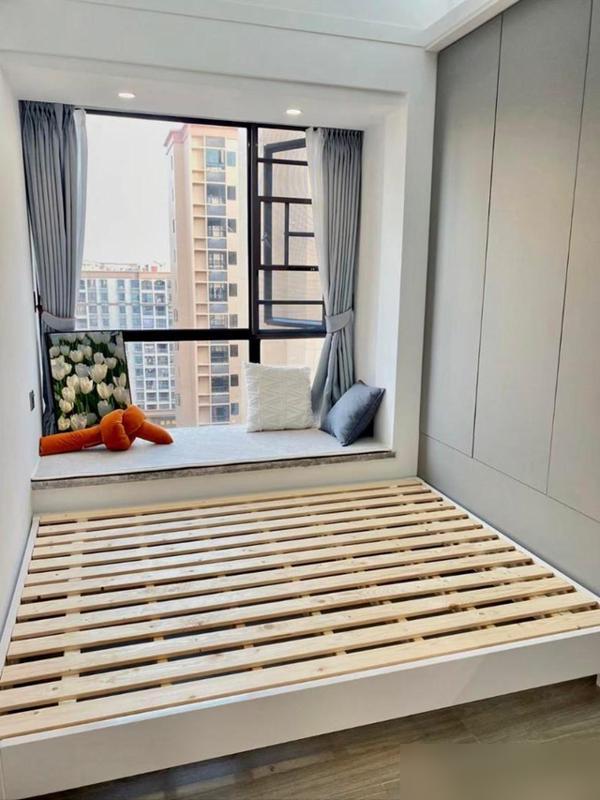 牀架下邊留空,通風好不說,換牀單、打掃衛生都方便,牀底還能塞收納箱,實用度直接拉滿。