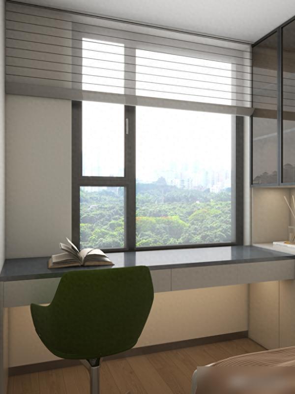書桌靠窗本來採光就好,布簾一拉反而擋光,捲簾一推一拉方便得很,還不積灰,擦起來比布簾省事兒十倍。