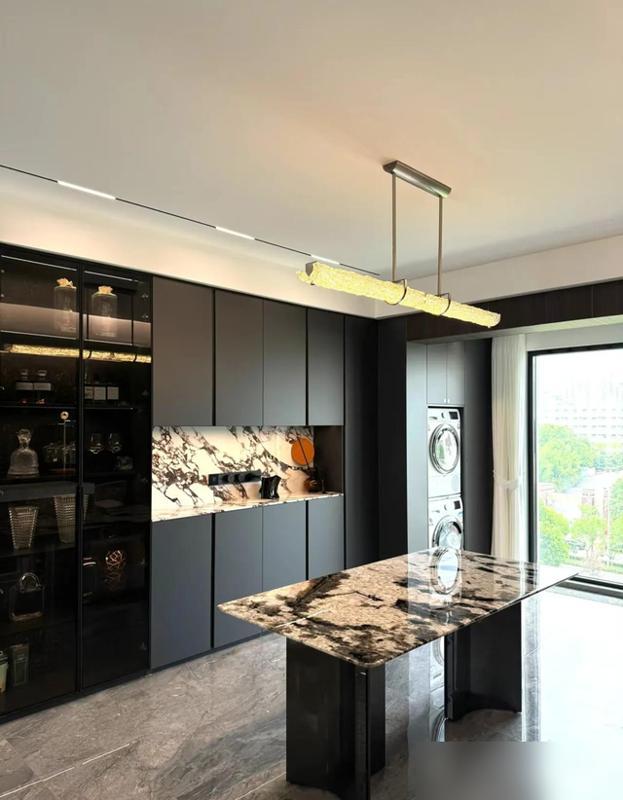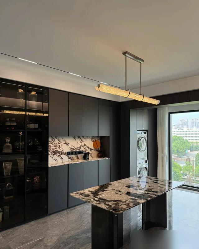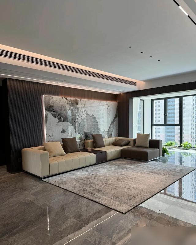 230平的空間,用巖板、木飾面和灰調傢俱撐着,沒有傳統歐式的花裏胡哨,倒多了份“不費力的高級”。無主燈配磁吸軌道燈,層高顯高不說,光線軟乎乎的,不像射燈那樣扎眼睛,這種“藏巧於拙”的設計,確實戳中了不少人的審美點——尤其是咱們這種過了“愛折騰”年紀的,就圖個住着鬆弛。