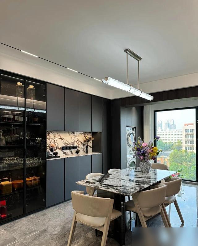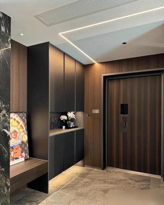 最佩服的是那些“藏在日常裏的巧思”。比如鞋櫃底部留空,換鞋時隨手塞拖鞋,不用彎腰翻找;餐邊櫃中間做巖板檯面,鑰匙、小家電往上一放,看着整齊還不怕刮花。這些細節比擺拍的裝飾品實在多了,住久了才知道,家裏最動人的不是“好看”,是“好用”。