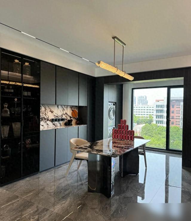 80萬的裝修費聽着不便宜,但看這巖板通鋪、魚骨拼的木地板,還有五年不過時的灰調配色,比追着網紅款瞎砸錢強多了。