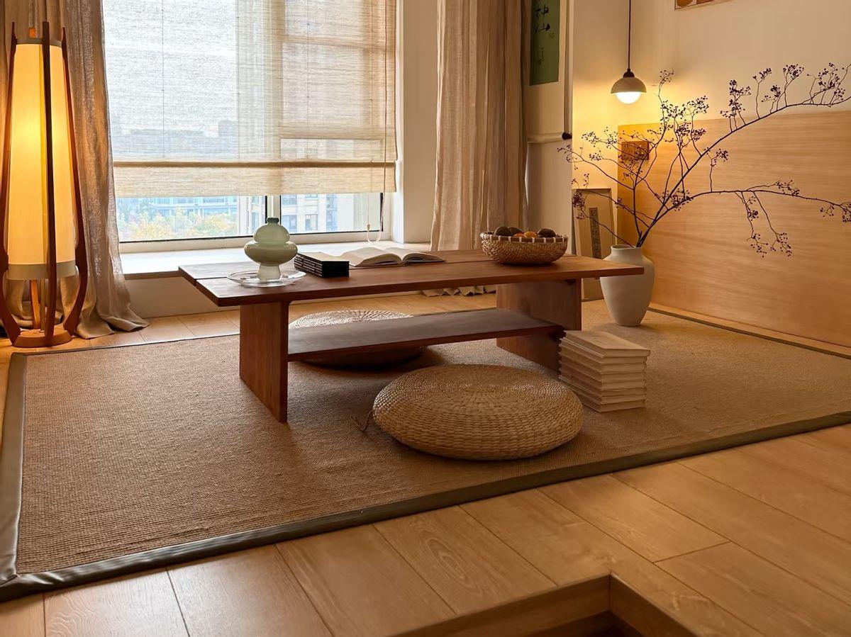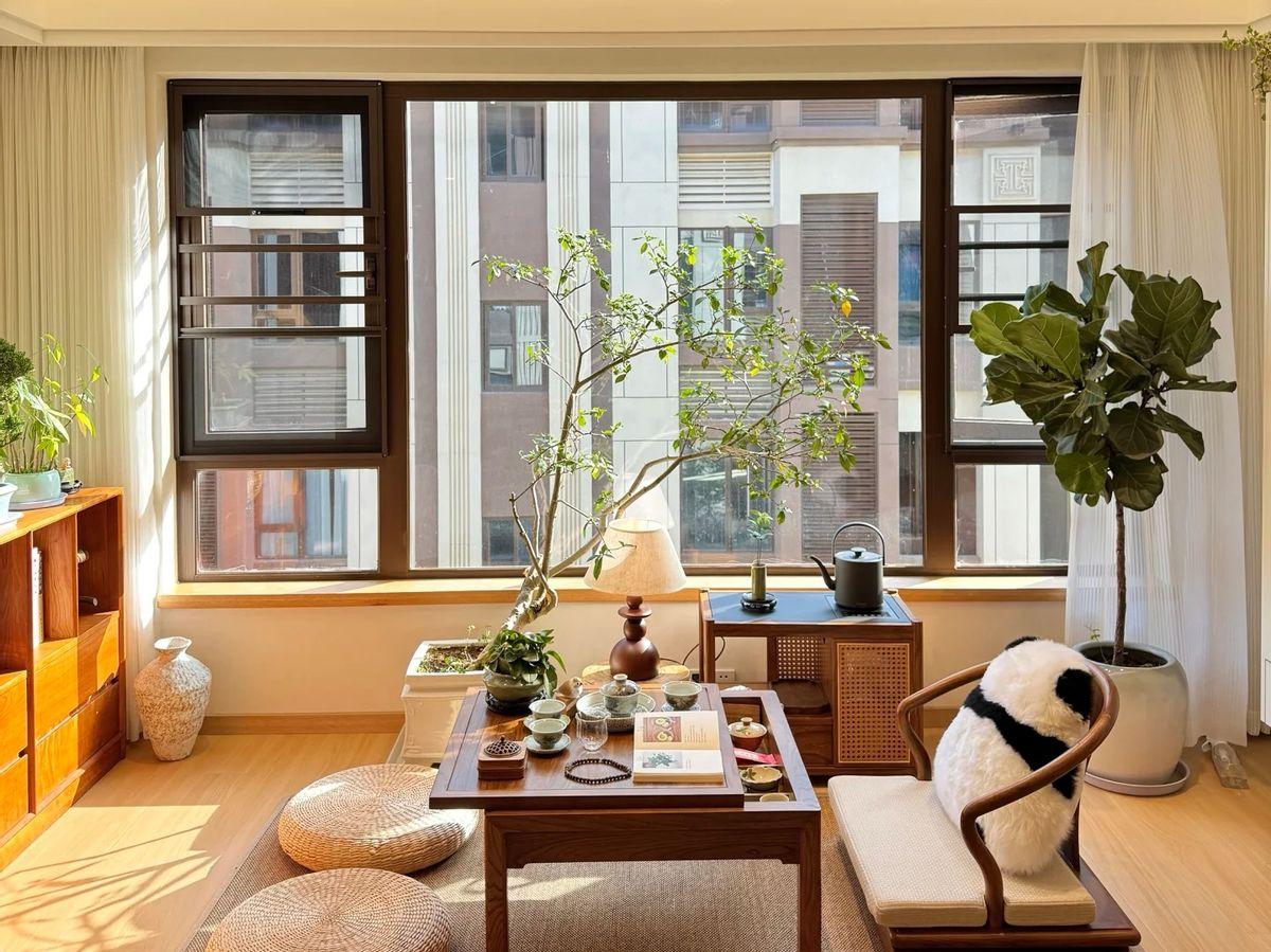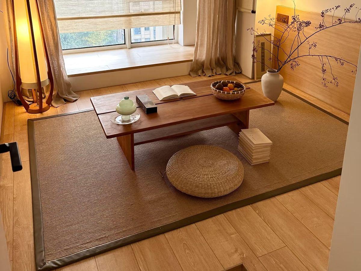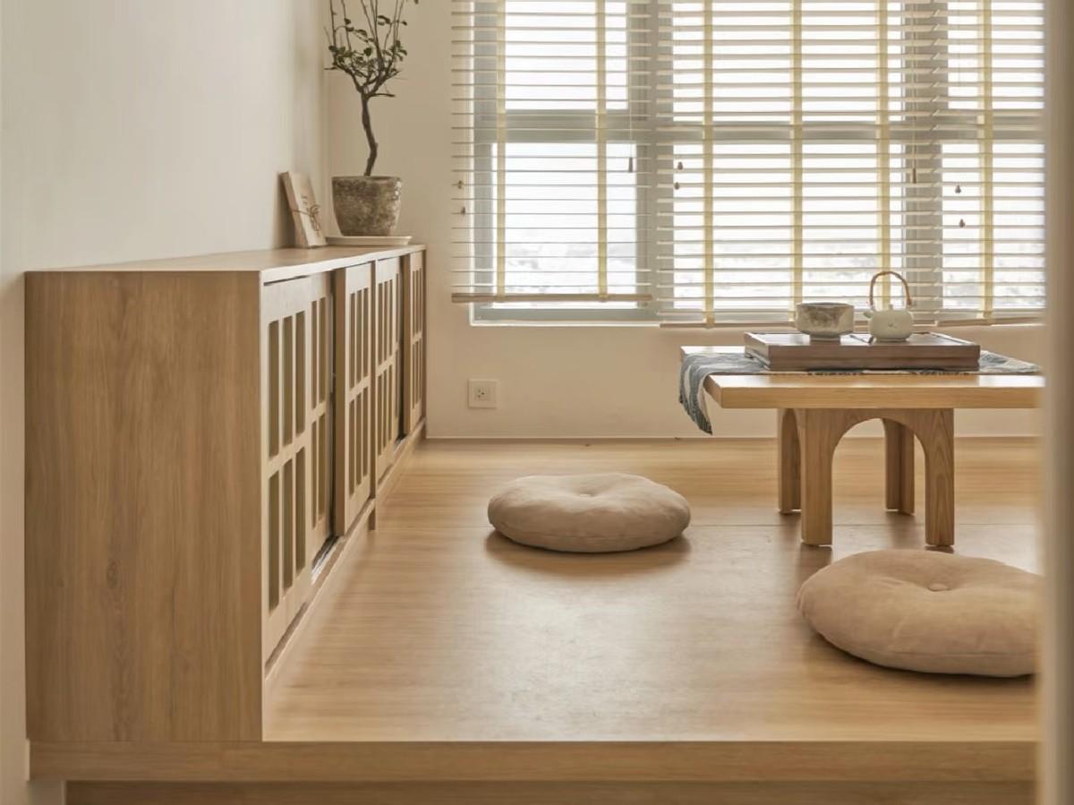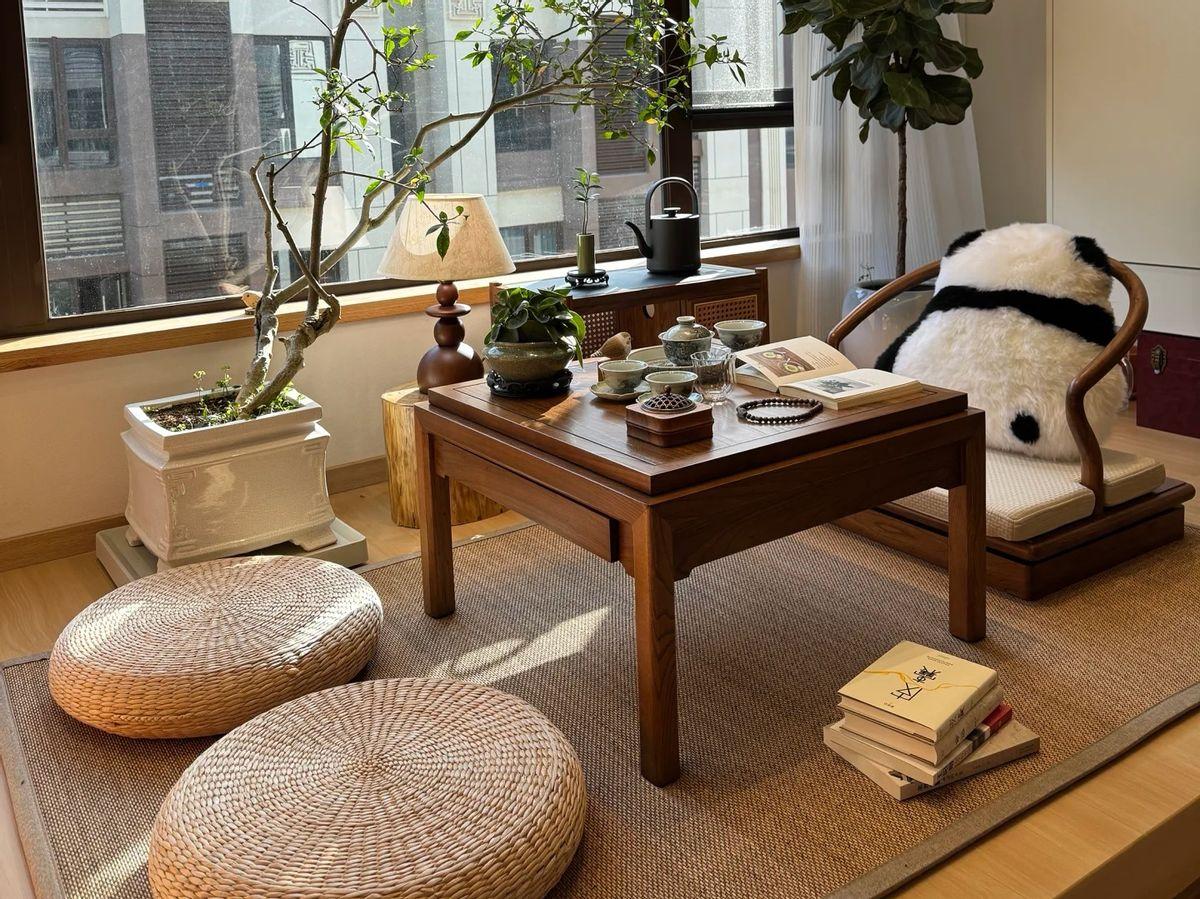 因爲現在去客廳化越來越多,所以客廳會客反而並不好。他的想法是將次臥改成一個會客的地方,做了個地臺,上面擺上茶几茶具。