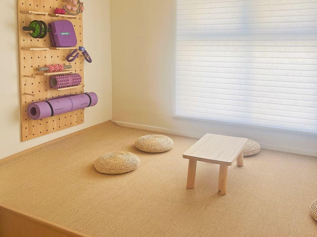 例如可以簡單的做成健身區,上面鋪個墊子就可以了。對於女生來說。可以做成瑜伽區。