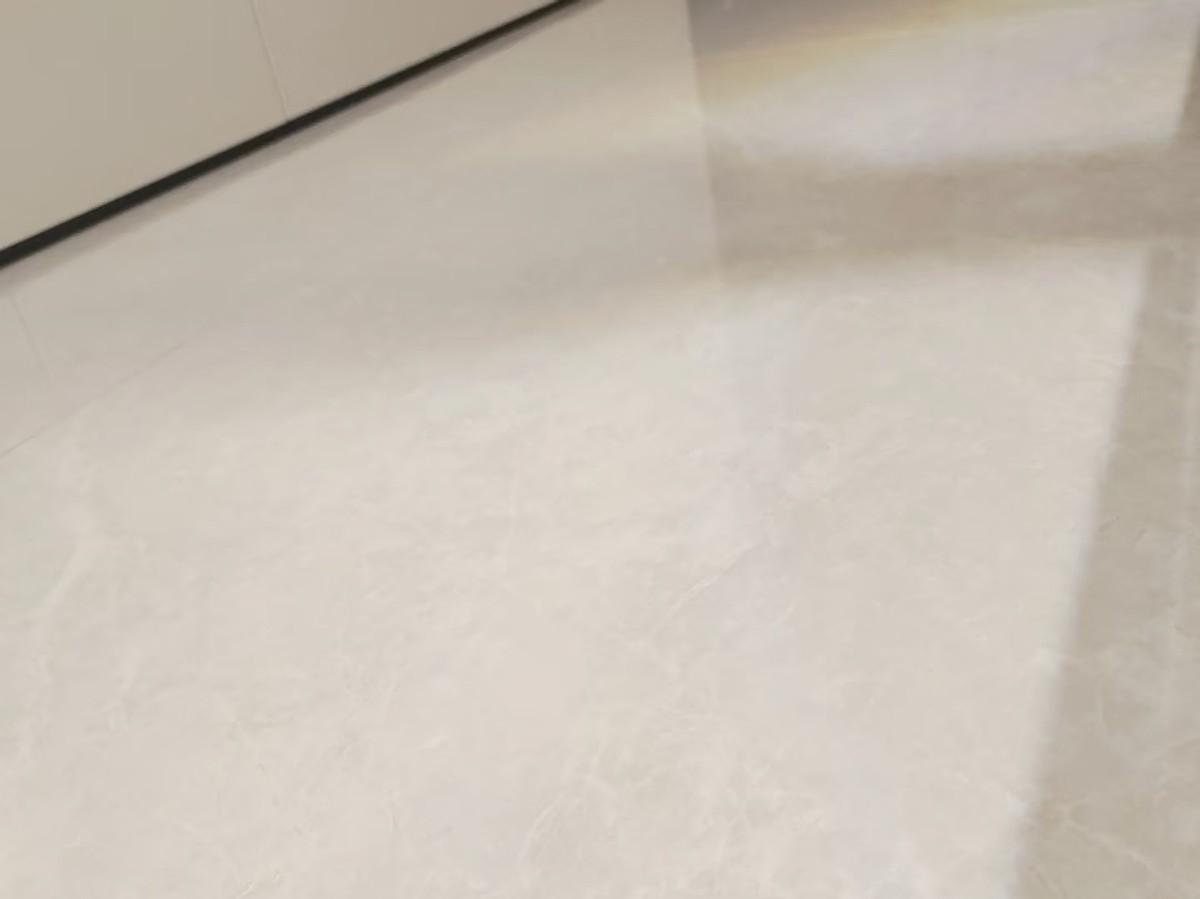 而這次裝修,從入戶門一直到客廳餐廳,到臥室書房,一直到廚房和衛生間,都是鋪的地磚,鋪的是淺灰色的地磚。