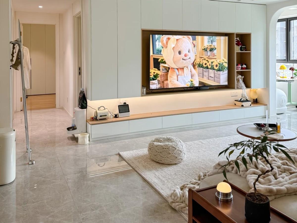 入住以後發現,這種選擇真的很明智。地面就是髒一點,也不顯。而且,地面髒了,家裏有掃地器人一掃就完了,就不用拖地了。