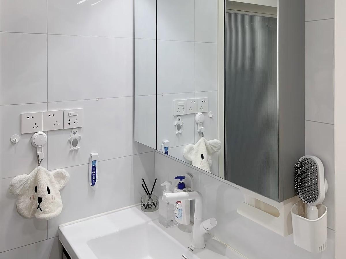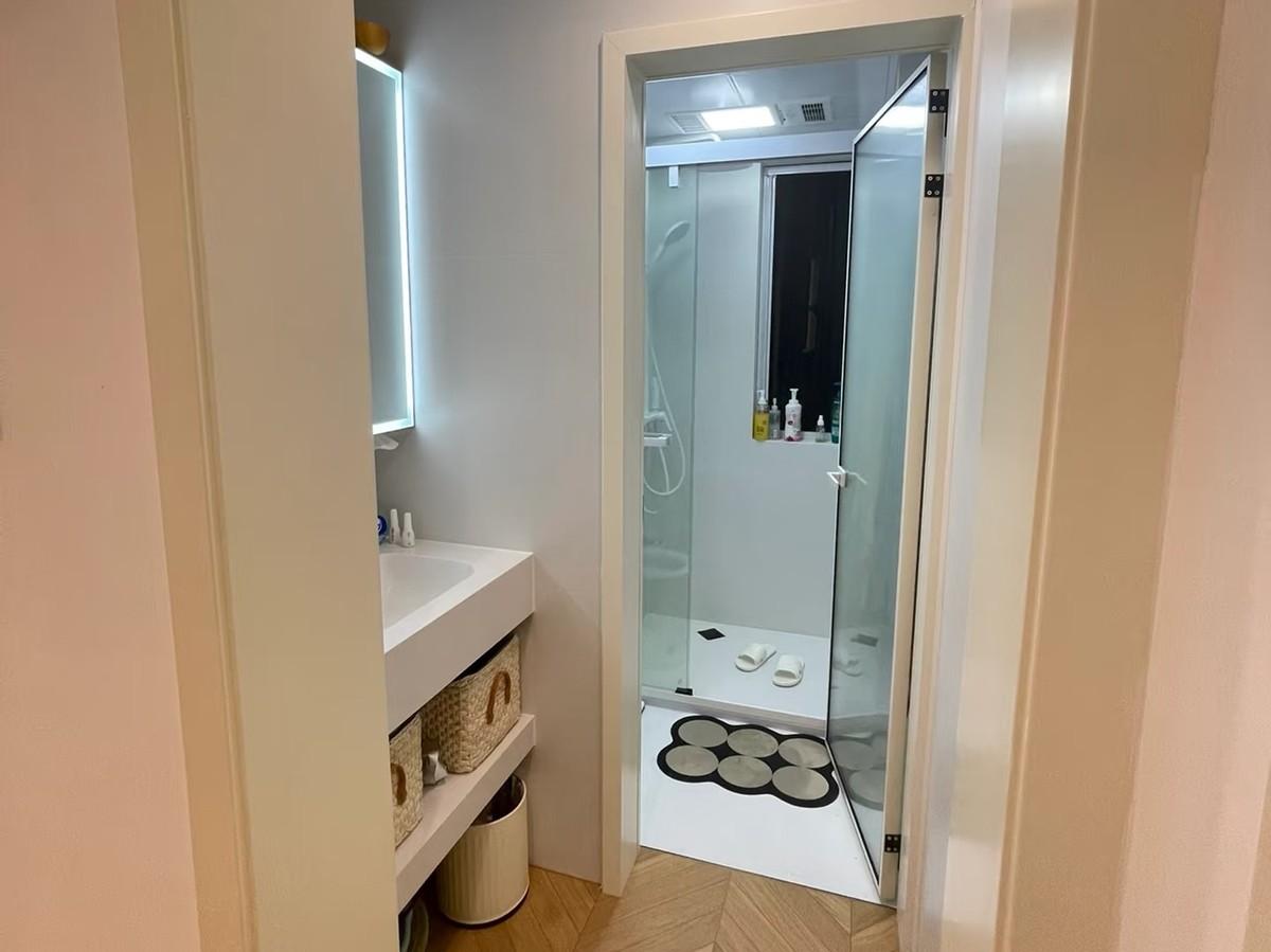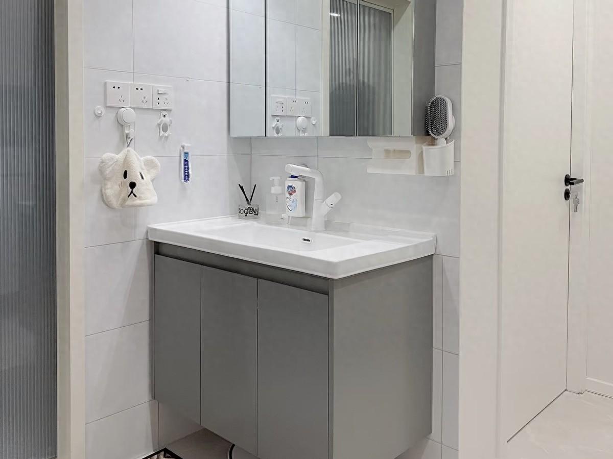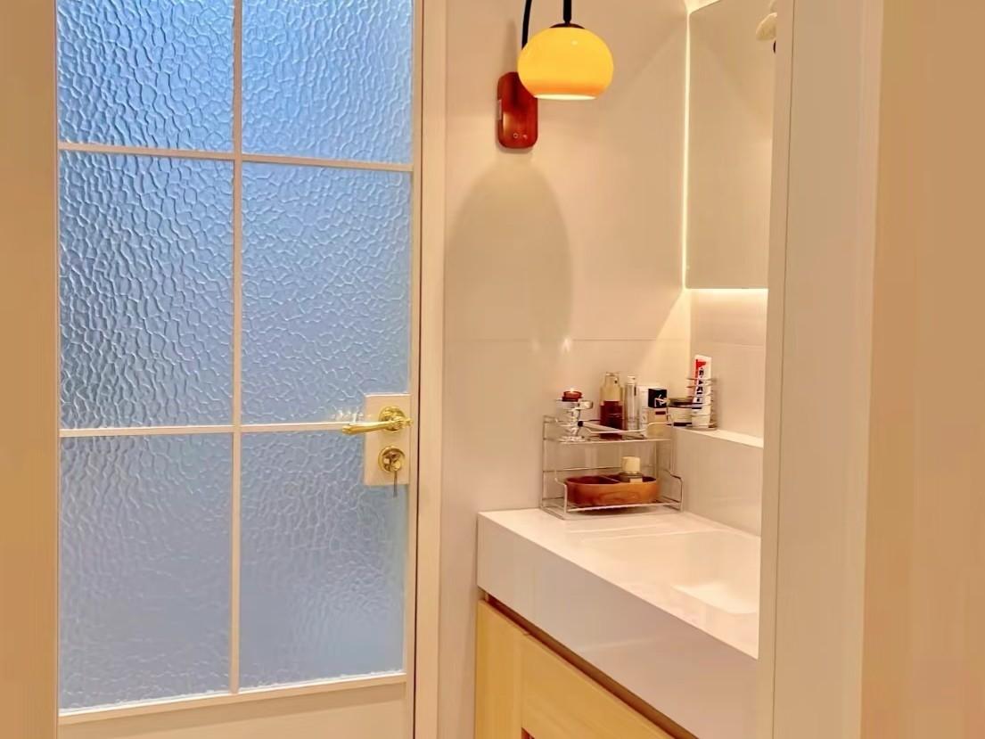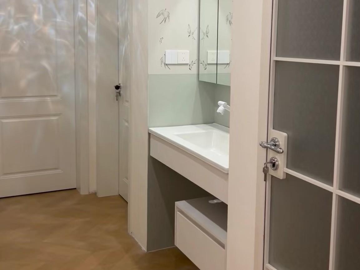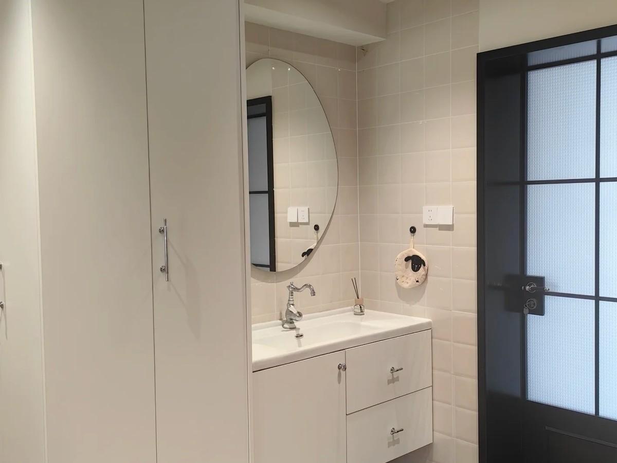 這種完全乾溼分離,衛生間門口設置洗漱臺的方案,也解決了早上同時使用衛生間的問題。同時,衛生間也會顯得稍微寬敞一些。