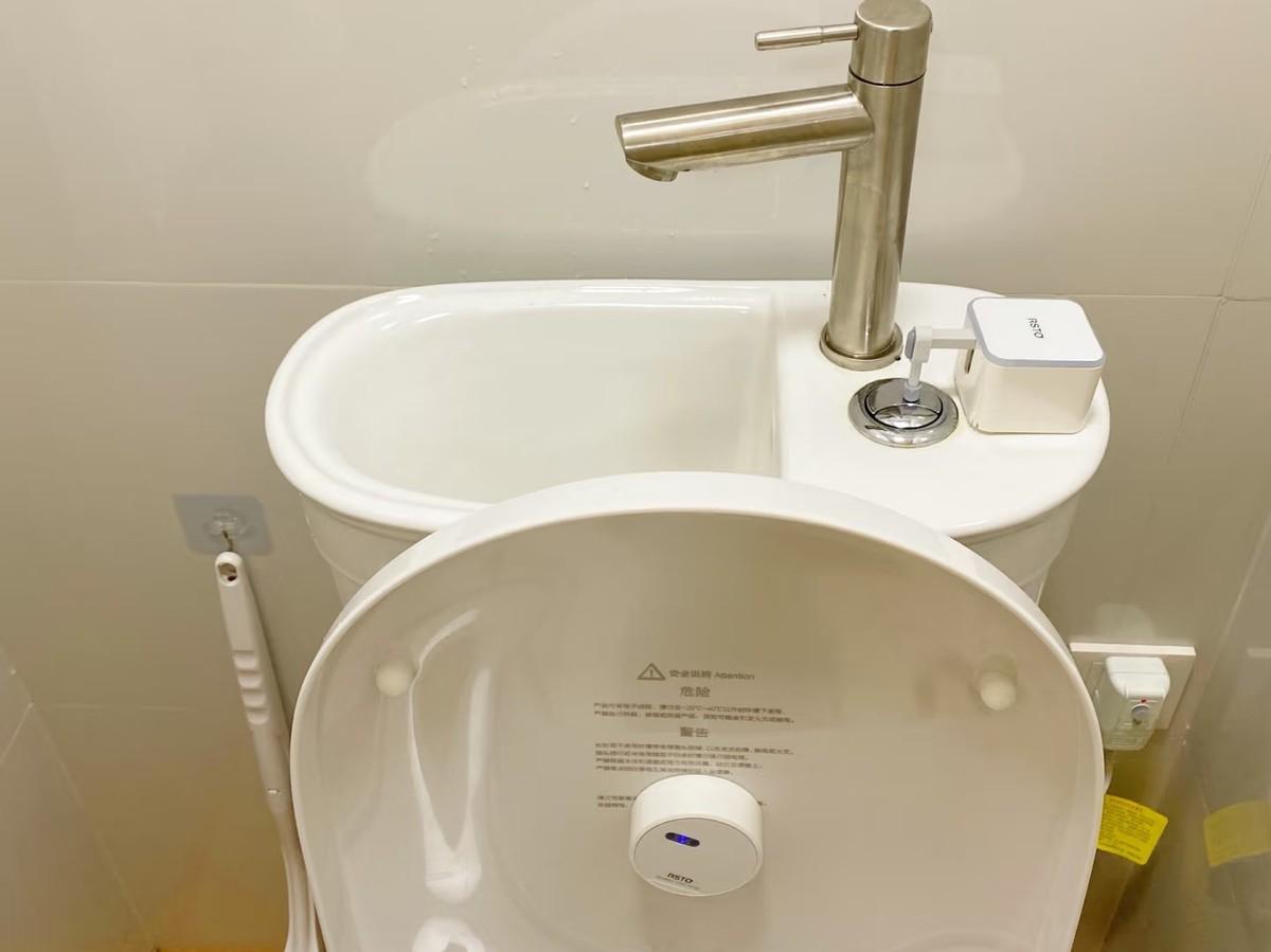 而考慮到平時去衛生間以後需要洗手,在馬桶的上方安裝了一個小型的洗手池。就不用擔心去完衛生間沒有辦法洗手了。