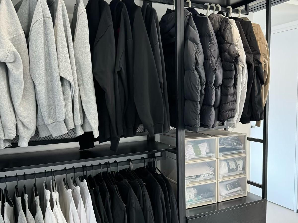 入住以後,我就發現洗完的衣服,只要往掛衣區一掛就行了。不用疊衣服,而且可以分季節掛,春天的衣服掛在一個區域,夏天的衣服掛在一個區域,冬天的衣服又掛在一個區域。