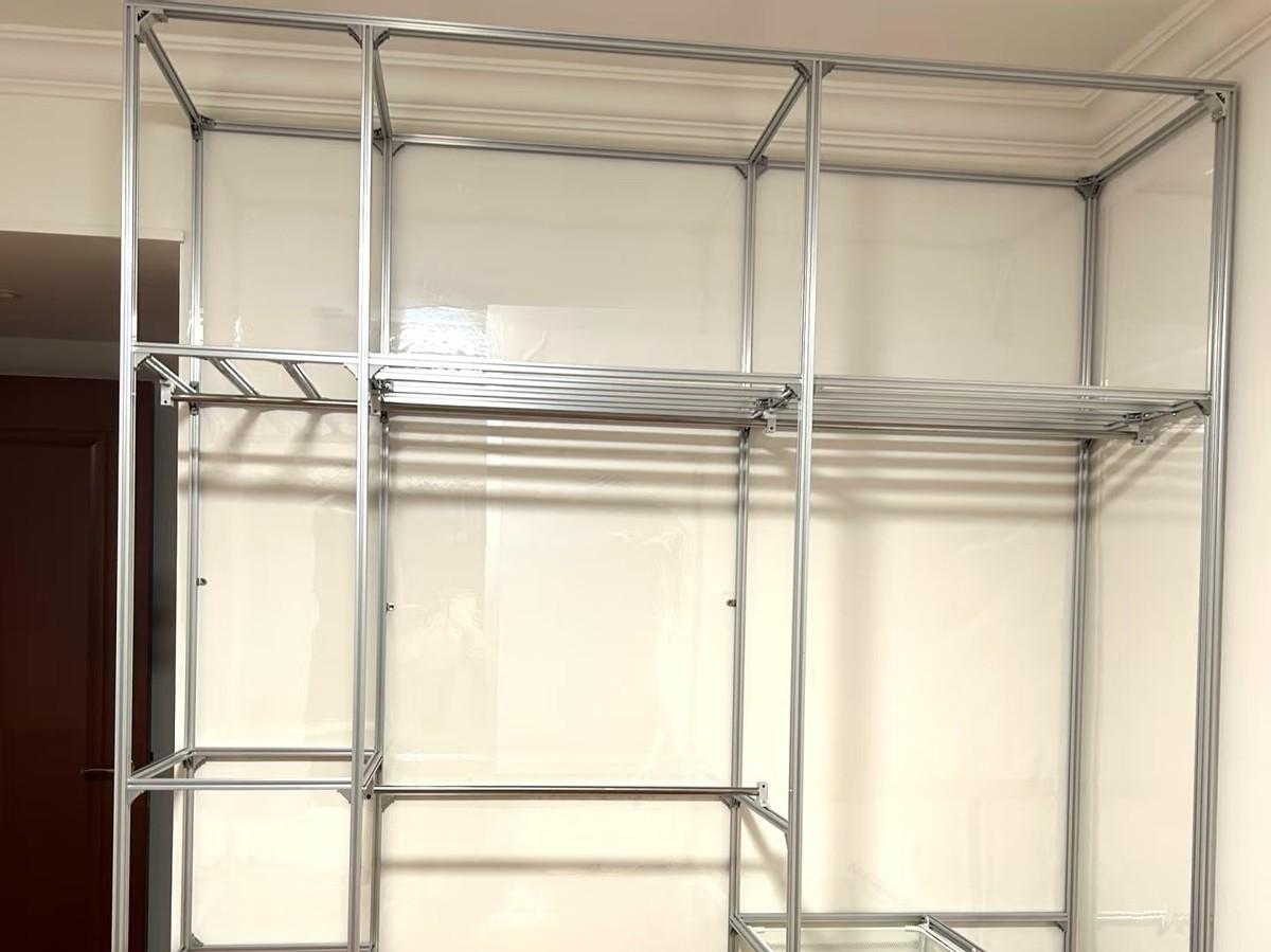 很多朋友擔心的鋁合金框架衣櫃不防塵、落灰的問題,其實是不存在的,只要櫃門裝好了。