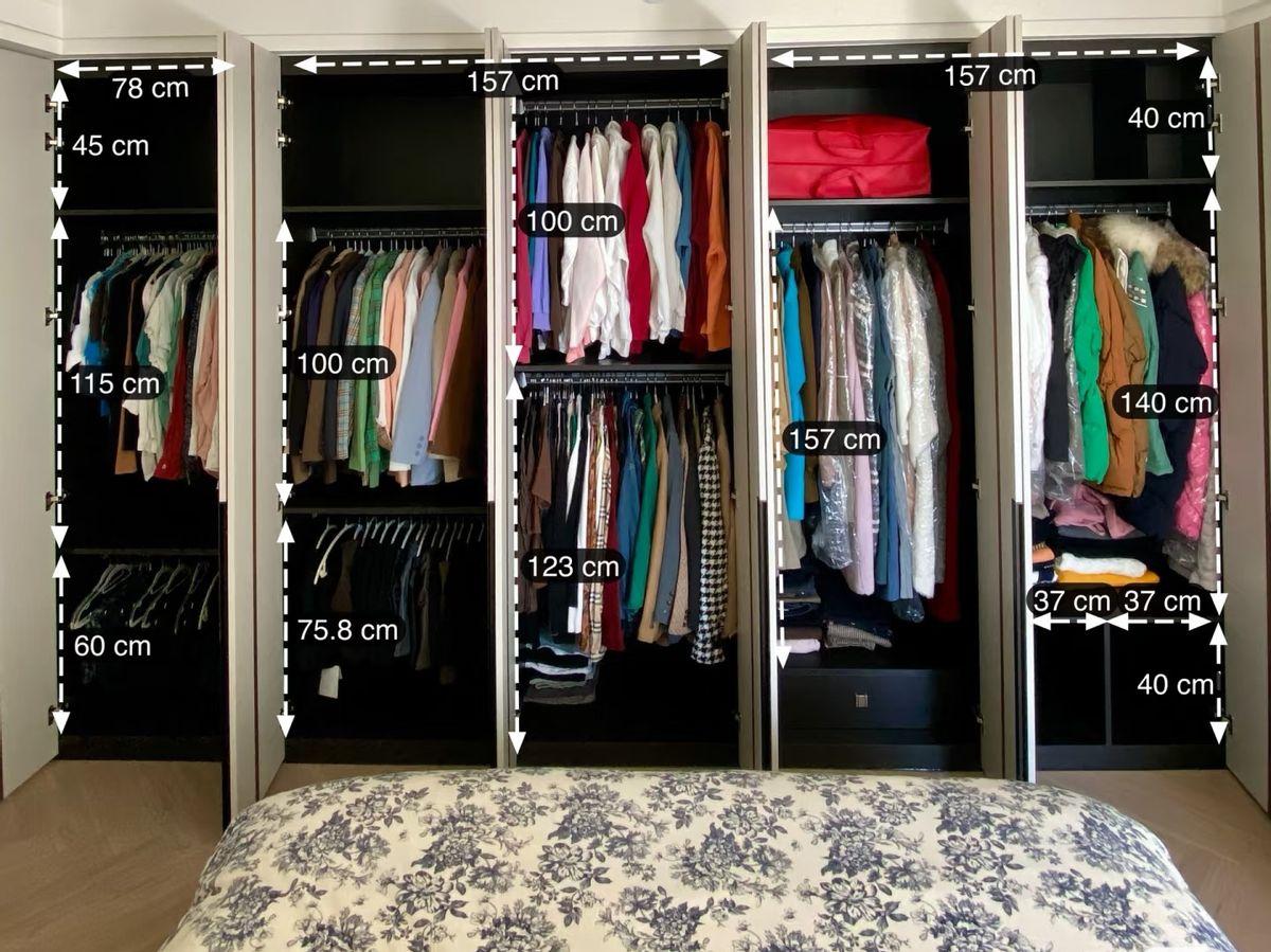 自從改成了這個全掛式衣櫃,就沒有了這種煩惱。因爲是分季節掛衣區,想找衣服,打開櫃門就能夠看見了。