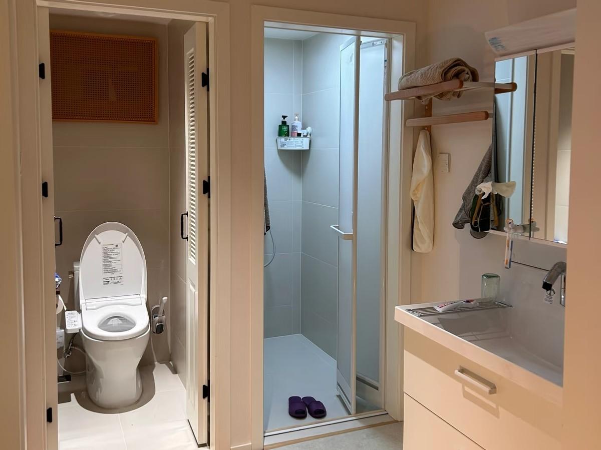 入住體驗以後,我發現真的不錯。一開始擔心的漏水問題不存在。每次洗淋浴,水順着浴簾流到斜坡,沿着斜坡流進淋浴間,外面幾乎就沒有水。
