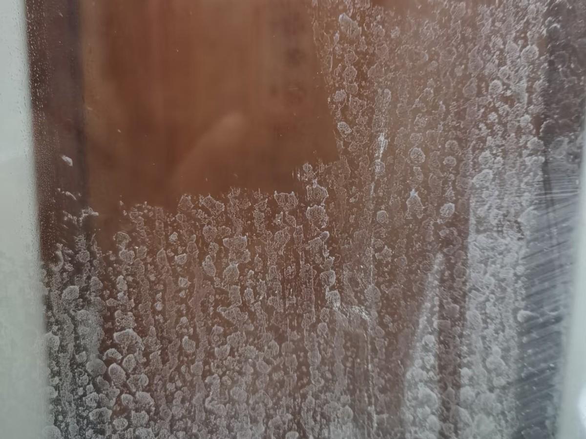 只要是家裏有淋浴房,有玻璃浴房,都會發現這個問題。玻璃上過不了多長時間就結了一層水垢,灰濛濛的。而且,這種水垢隨着時間的增長越來越多,越來越厚。