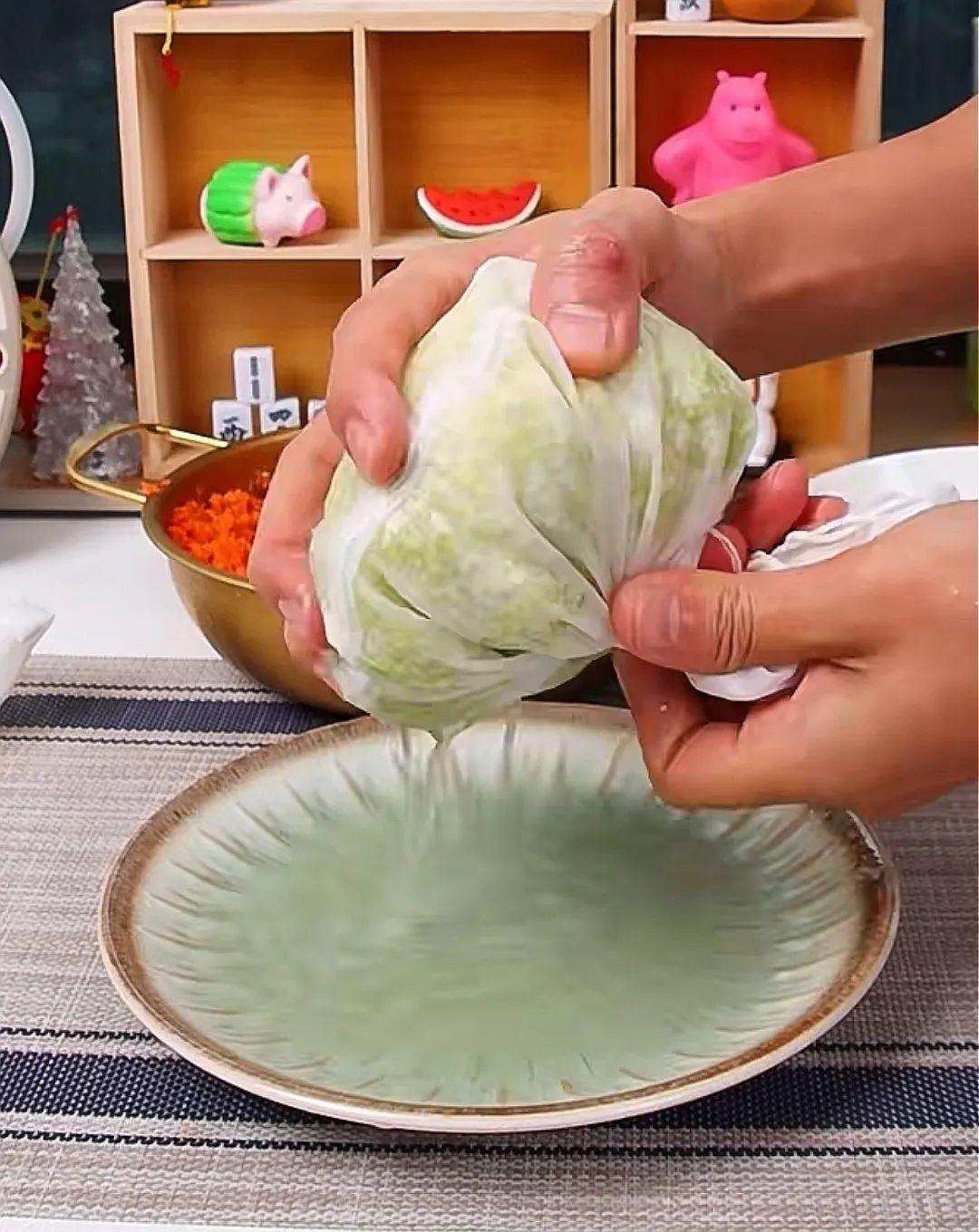 每次想喫水餃、蒸包,最愁的就是要擠出菜餡裏的水。