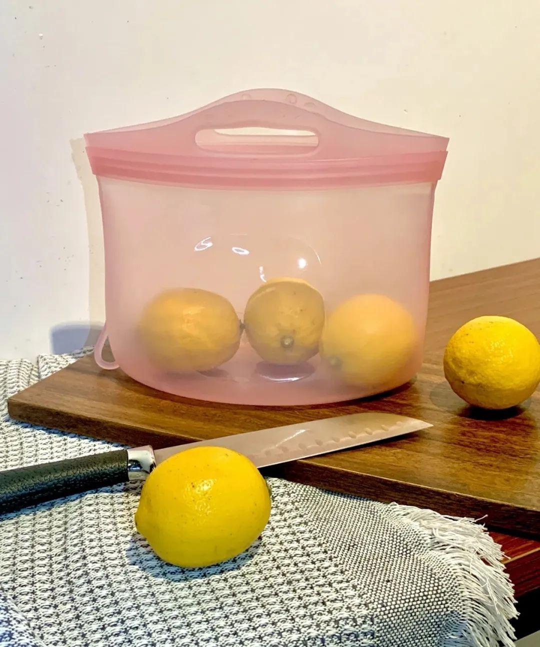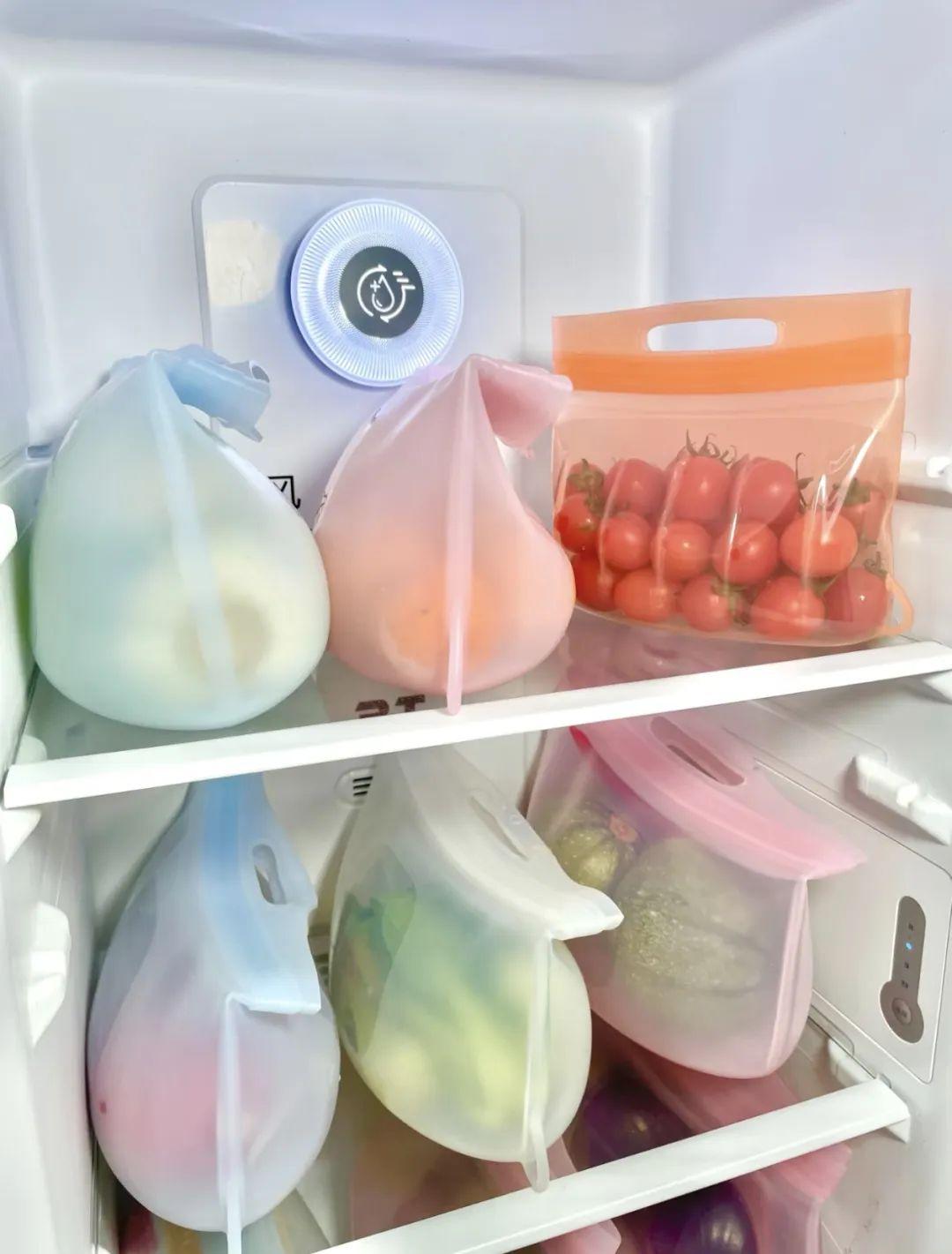 而是一種可循環使用的保鮮袋,材質更加厚實,全是食品級材質硅膠製成的。
