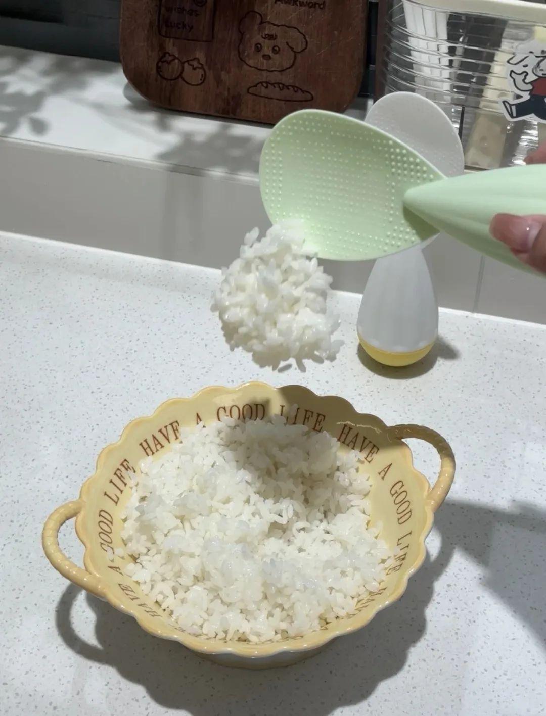 每次盛飯,都粘滿大米粒,甩也甩不掉,難清理不說,用到一半的時候還找不着合適的地方放,弄的自己手忙腳亂。