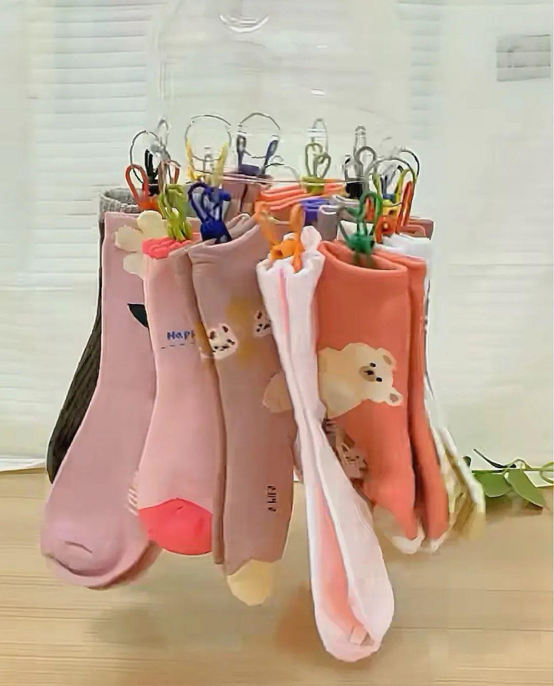 這樣一來,不僅不用擔心襪子被風吹走了,而且“全方位”的展示使襪子晾曬的更加徹底!