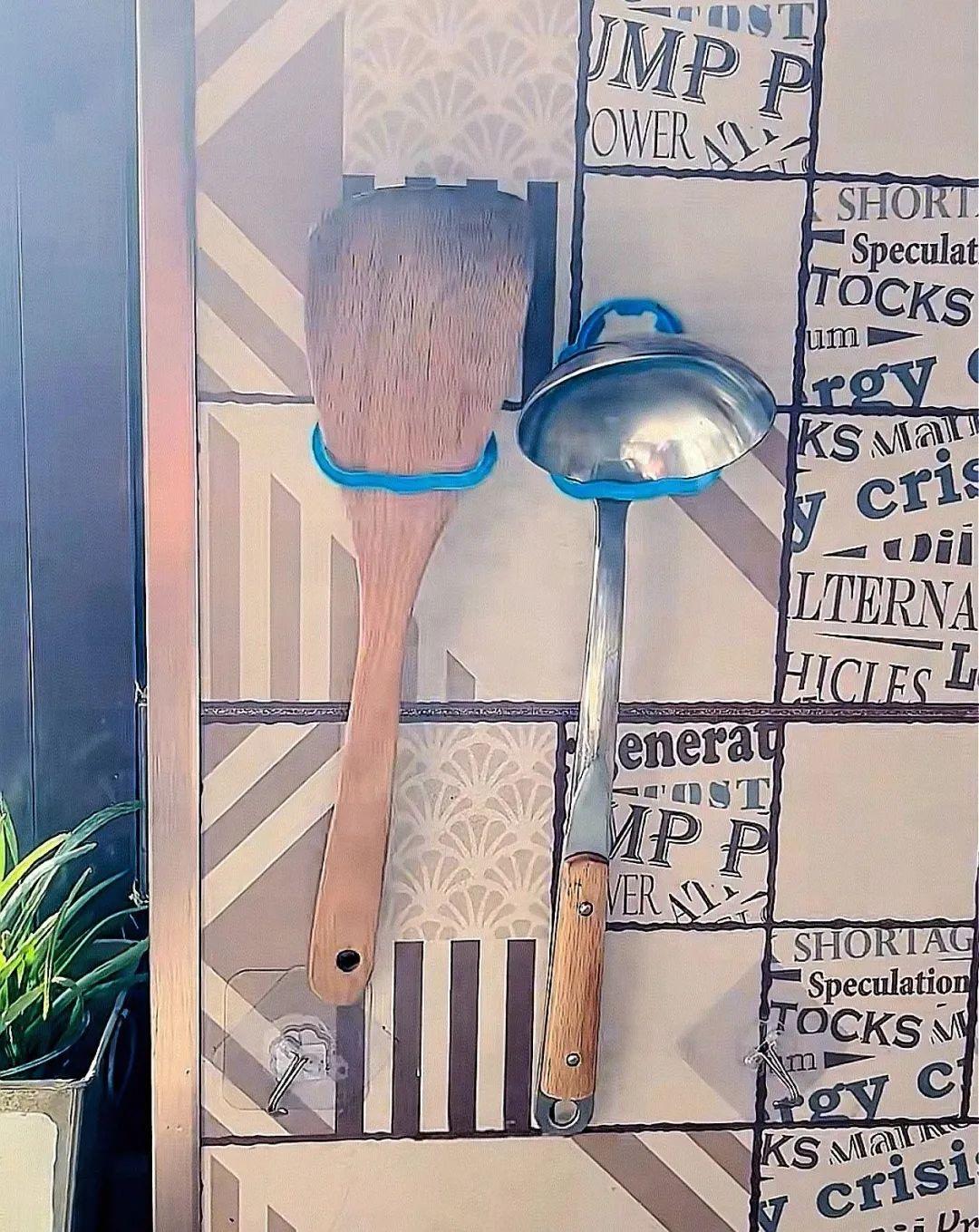 提手的部分比普通掛鉤要寬的很多,可以用來收納廚房用品,如勺子、鏟子、抹布等。
