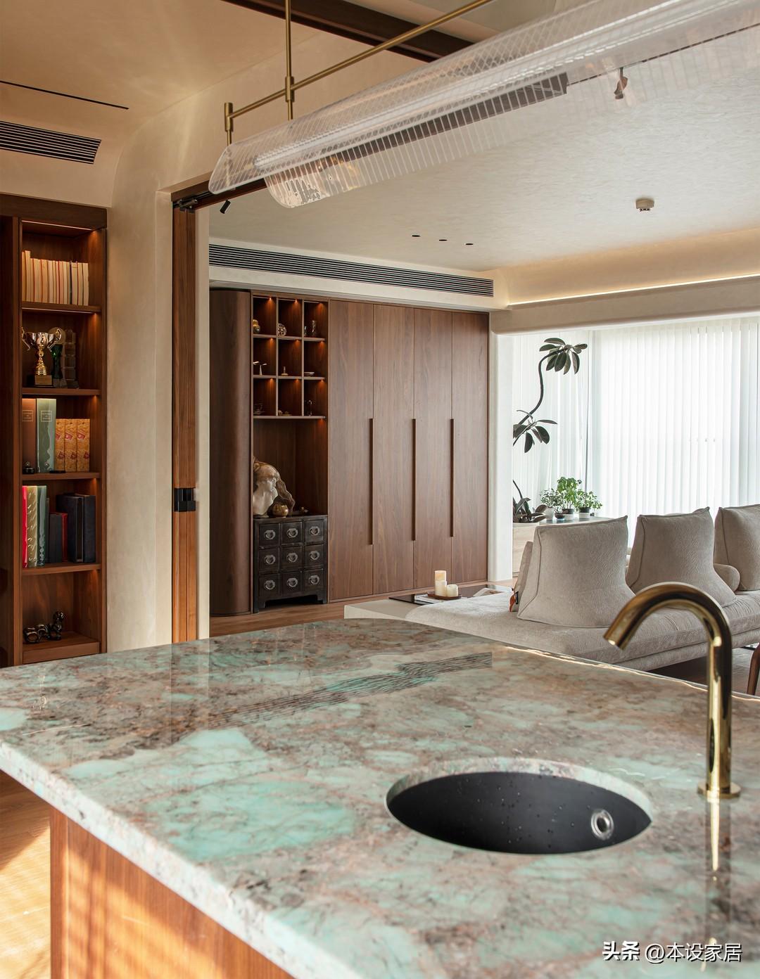 作爲一個家的“精神域場”,客廳除了寬大適合的“躺平”沙發外,還有“小資”的單人沙發,當陽光穿過電動控制的白色夢幻簾,營造出一種靜謐的、沉默的氣質,彷彿微風拂過蘆葦輕輕搖擺,吟唱那內斂而又深情的詩。