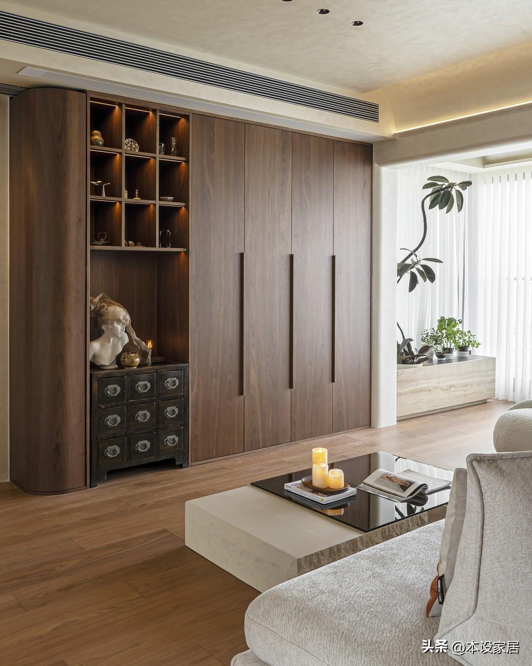 整體以淺色爲基調,加入溫潤的原木色來調和空間氣氛,而簡約的線條烘托出現代風,暗藏的led暖光燈帶柔化了空間的意境。