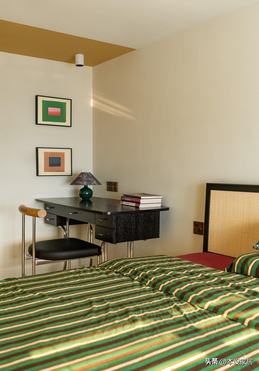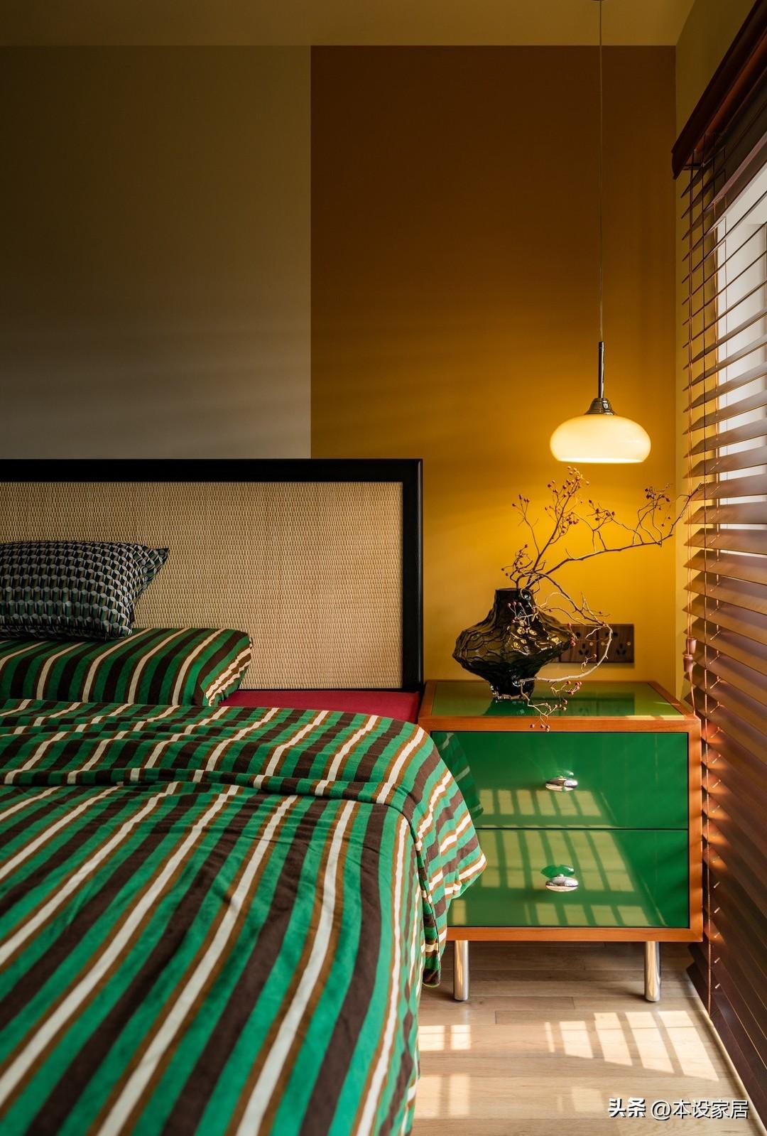 與其他空間的素淨相比,臥室像是落霞在沙漠中的餘暉,又像是秋日層林盡染的漫山紅葉,而質樸的藤編靠背牀,讓晚睡的人有種安定的包圍感,忍不住點贊。