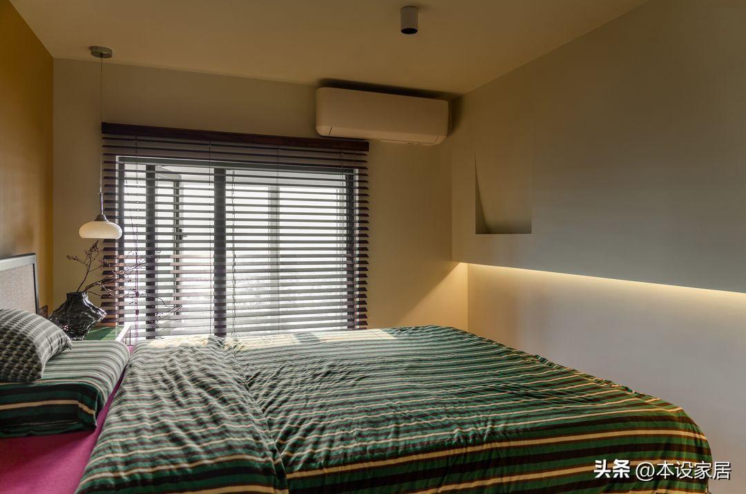 百葉窗簾的優點很多,不僅可以調節臥室的明暗,還可在在地面和傢俱上留下影影綽綽的唯美光影,尤其是天氣涼爽時,不阻擋窗外涼風的湧入,但對外又起到了保護隱私的作用。