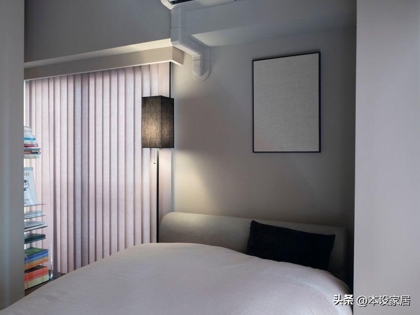 來看看美奈的臥室,面積僅5㎡,所以在改裝時乾脆拆除與客廳的隔牆,而且有兩面採光,特別是冬天,溫暖的陽光照進屋內,帶來一整天的好心情。
