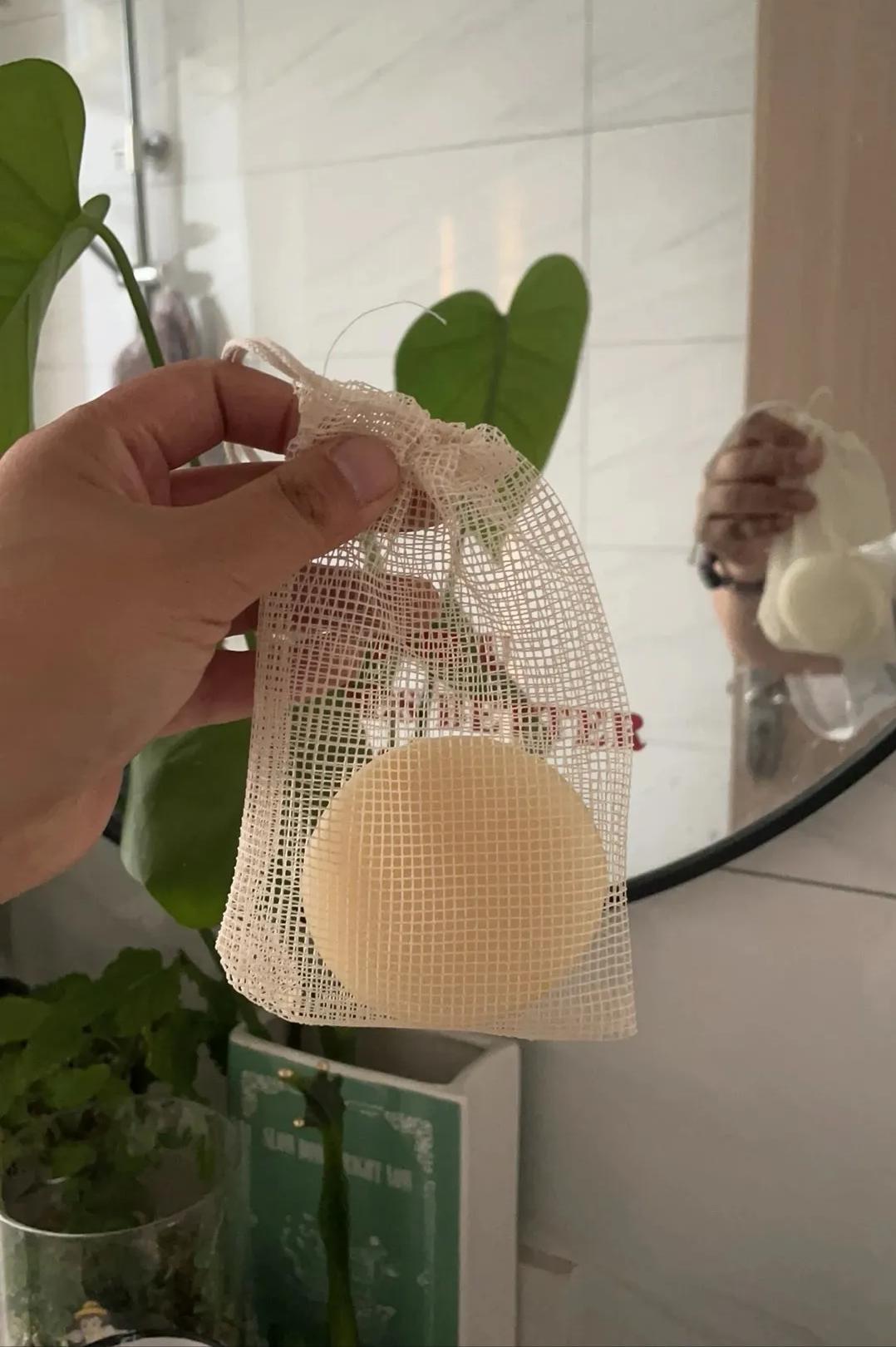 該說不說,這種棉線網格的材質,用來搓澡是真心舒服,既不會把皮膚搓疼,又有一定的去角質能力,用它洗澡就是那種溫柔又幹淨的感覺。