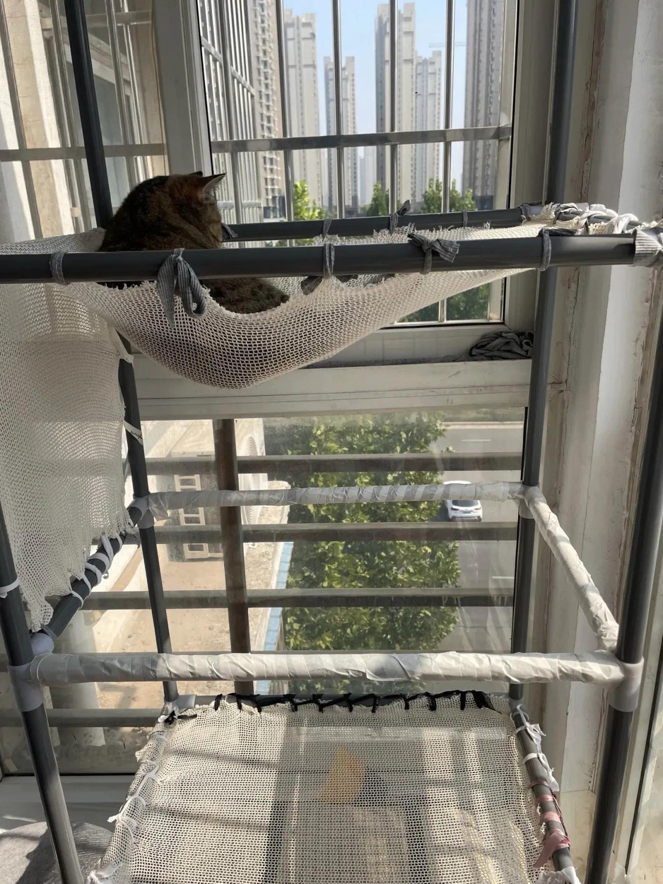 網友@超級無敵愛瓜瓜,我家貓主子的爬架,就是我自制的,用到的布,也是類似的純棉網格布。