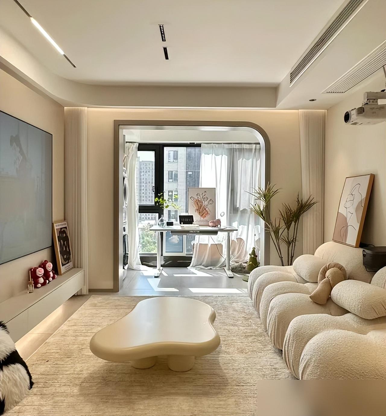 淺色柔光磚一路鋪開,配上無主燈設計,屋裏亮堂又顯大,小戶型瞬間拉伸成開闊場子,暖光一打,溫馨感自然冒泡。